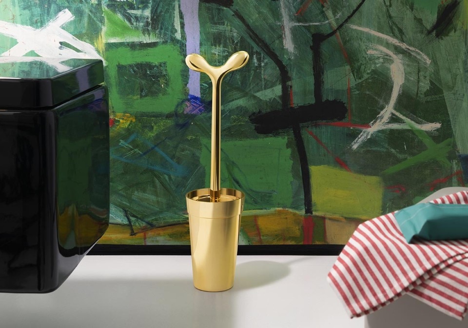 È stato il primo progetto a sdoganare con ironia un oggetto-tabù del quotidiano, lo scovolino o scopino per il bagno. Uscito nel 1992 e subito affermatosi come un grande successo di pubblico, il Merdolino di Stefano Giovannoni fa ricorso ad una forma narrativa e ad un uso espressivo della plastica per mimare un germoglio che spunta da un vaso. L’attuale riedizione, in 999 esemplari, esaspera il paradosso incarnato dal corto circuito tra letame e preziosità grazie ad un’inedita patina d’oro.