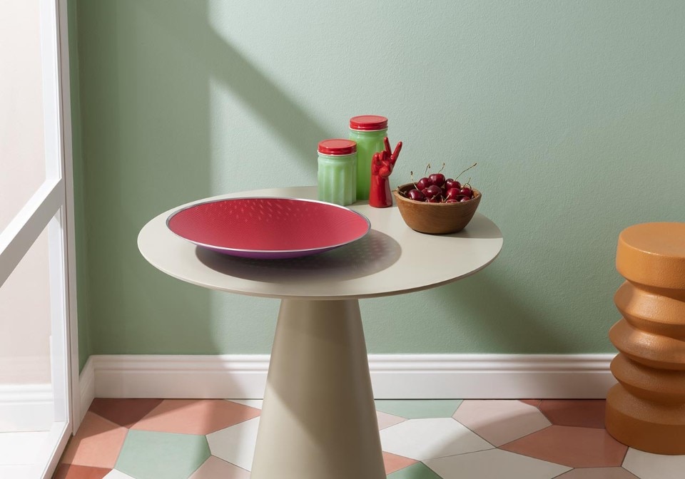 Una sfida a superare i confini del consueto e del possibile. È quanto incarna questa nuova versione del centrotavola disegnato da Susan Cohn nel 1992 durante un workshop presso il Centro Studi Alessi. L’uso della doppia mesh è un riferimento alle vecchie dispense foderate di rete dove un tempo si conservava il cibo, mentre a cambiare è il gioco di luce che si sprigiona dalla loro sovrapposizione.