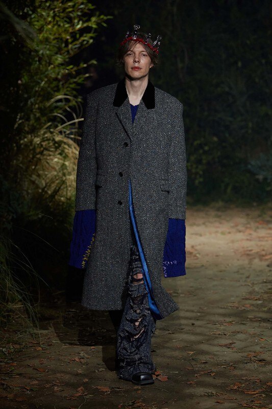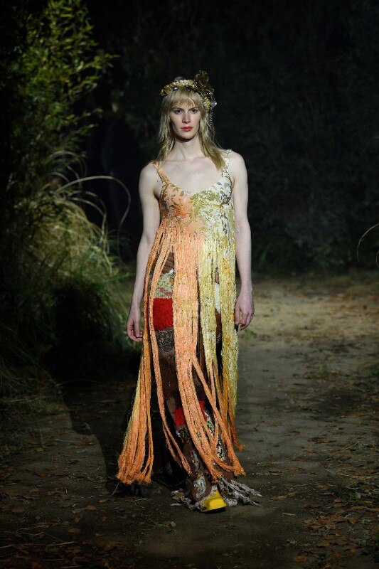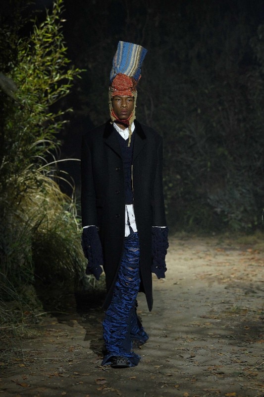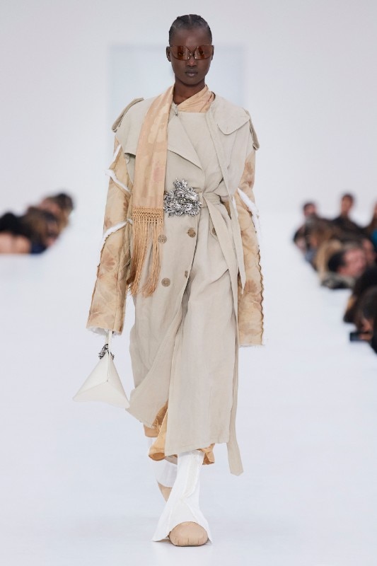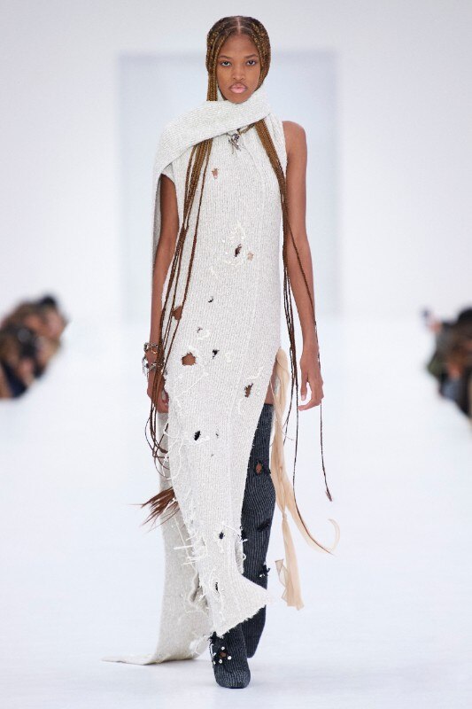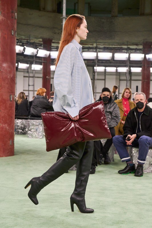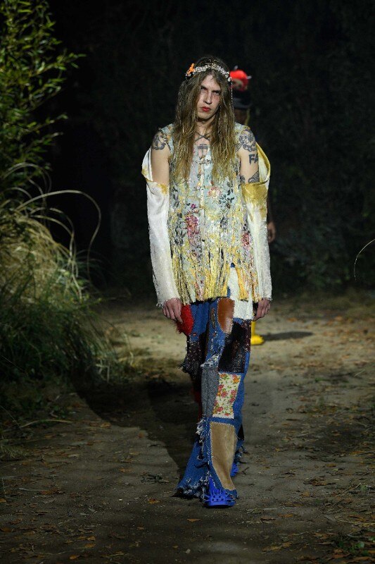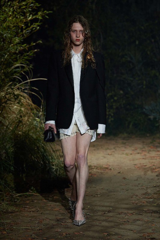 Con la direzione creativa di Francesco Risso, Marni ha ambientato la sfilata in un magazzino abbandonato nel quartiere Segnanino di Milano, sito nella zona nord della città. Nell’archeologia industriale Risso ha creato una foresta di bambù, un’atmosfera utopica immersiva che ha fatto da scenografia per i nuovi abiti. La collezione parla di mescolanza tra vecchio e nuovo, personale e condiviso, facendo del brand un manifesto all’autodeterminazione e positività del corpo. Agli abiti curati, si uniscono oggetti che sembrano rubati da un museo, in una mescolanza dove emerge la pratica del bricolage: abiti divelti, maglioni ricostruiti fuorimisura con maniche infinite, decori rammendati sui capi, assemblamenti di gioielli e capi sgualciti riparati. “Di cosa abbiamo bisogno se non di ciò che ha più bisogno di noi?” ha scritto il direttore creativo in una nota scritta a mano per gli ospiti.