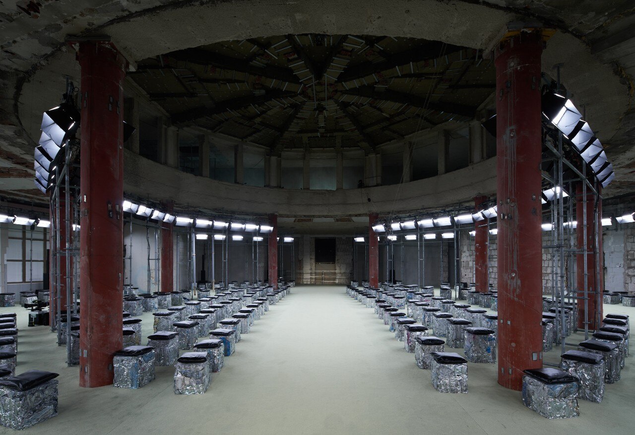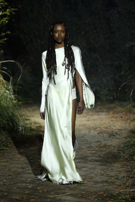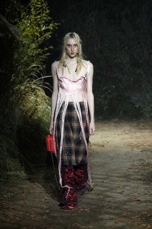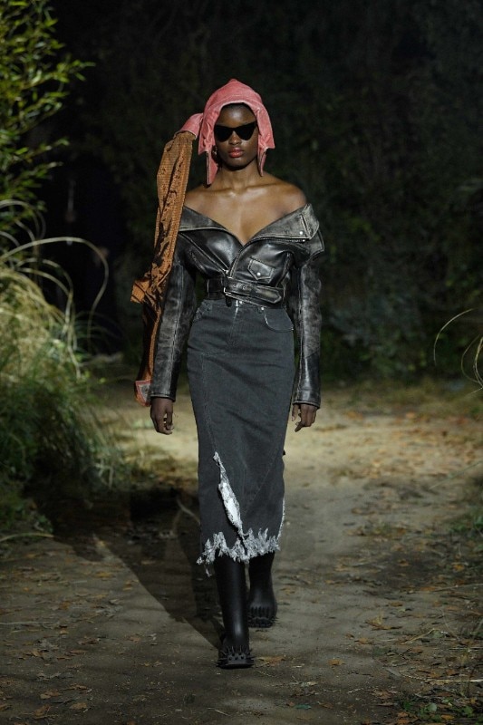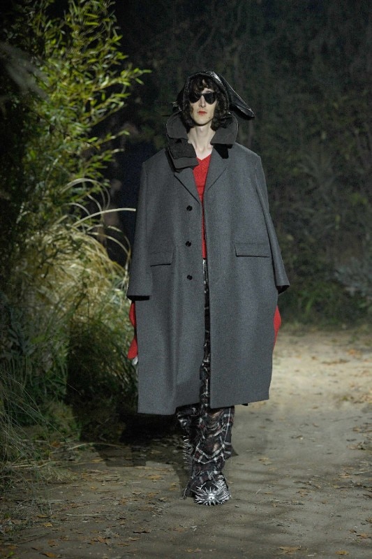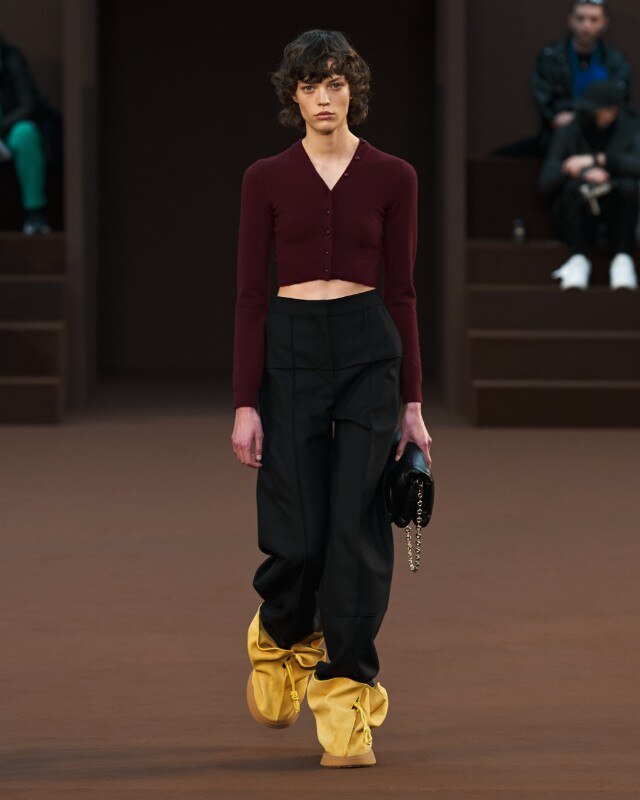 Con la direzione creativa di Francesco Risso, Marni ha ambientato la sfilata in un magazzino abbandonato nel quartiere Segnanino di Milano, sito nella zona nord della città. Nell’archeologia industriale Risso ha creato una foresta di bambù, un’atmosfera utopica immersiva che ha fatto da scenografia per i nuovi abiti. La collezione parla di mescolanza tra vecchio e nuovo, personale e condiviso, facendo del brand un manifesto all’autodeterminazione e positività del corpo. Agli abiti curati, si uniscono oggetti che sembrano rubati da un museo, in una mescolanza dove emerge la pratica del bricolage: abiti divelti, maglioni ricostruiti fuorimisura con maniche infinite, decori rammendati sui capi, assemblamenti di gioielli e capi sgualciti riparati. “Di cosa abbiamo bisogno se non di ciò che ha più bisogno di noi?” ha scritto il direttore creativo in una nota scritta a mano per gli ospiti.