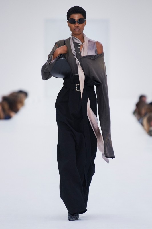 Evento tra i più attesi della settimana milanese, Bottega Veneta ha presentato non solo la nuova collezione ma il debito alla direzione di Matthieu Blazy. Una linea che parla di movimento e emozione: “Bottega Veneta è essenzialmente pragmatica perché è un’azienda di pelletteria. Poiché è specializzata in borse, si tratta di movimento, di andare da qualche parte”. Nel passaggio di consegna con Daniel Lee, Blazy ha preferito non alterare l’identità del brand, trovandoci però di fronte a un guardaroba aggiornato dove prevale la bellezza e ingegnosità dei singoli capi. Dal denim quotidiano e fotorealistico (in realtà nabuk stampato e flessibile) con la sua borsa Kalimero a tracolla; alle ragazze con le camicie da lavoro (di nuovo in nabuk, realizzate come le camicie tradizionali) e i loro stivali intrecciati alla coscia, la collezione è una sequenza plastica di tessuti rigorosi, tutti freschi ed formulati per l’ultra-leggerezza. “I gesti di un individuo contano” spiega a fine sfilata “alla fine è la decisione di chi lo indossa di come muoversi e vivere in questi abiti, di come racconterà le proprie storie attraverso questi pezzi”.