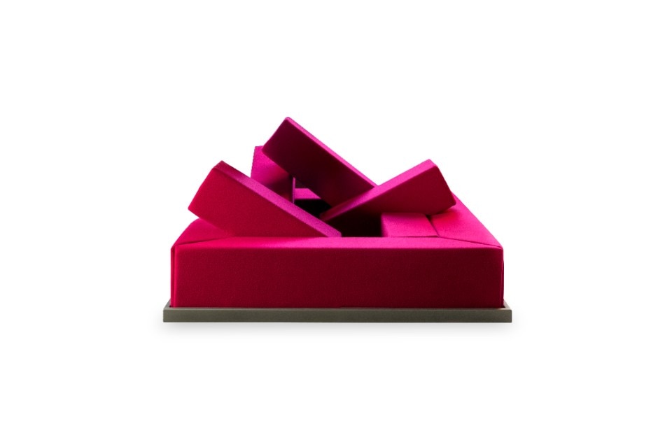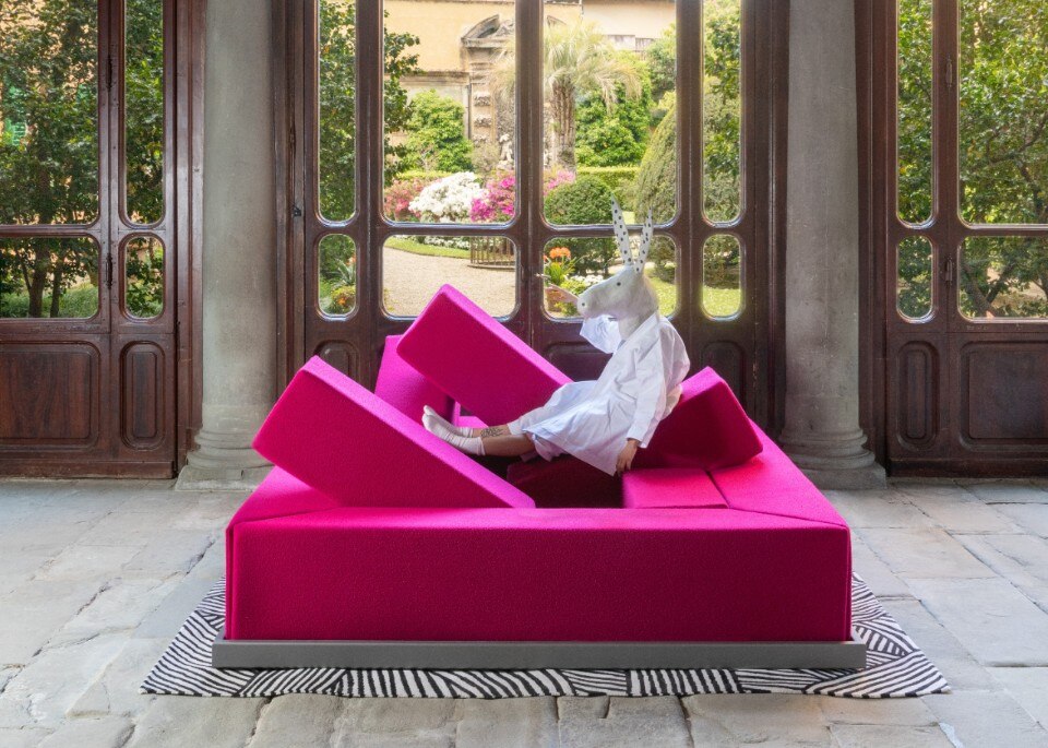 Negli anni Settanta, era prodotto da Gufram. Oggi è Poltronova, storica azienda fiorentina, a riportare nelle case il grande ring di imbottiti smontabili, riproducendo fedelmente l’originale, pensato alla scala del luogo e non a quella dell’uomo. Le cromie invece cambiano: blu cobalto, rosa lampone e verde smeraldo. Pettena stesso riflette sull’atemporalità della forma, semplice come un grembo “dove tutto accade o è già accaduto, ma che suggerisce ancora delle possibilità, altre cose che possono accadere”.