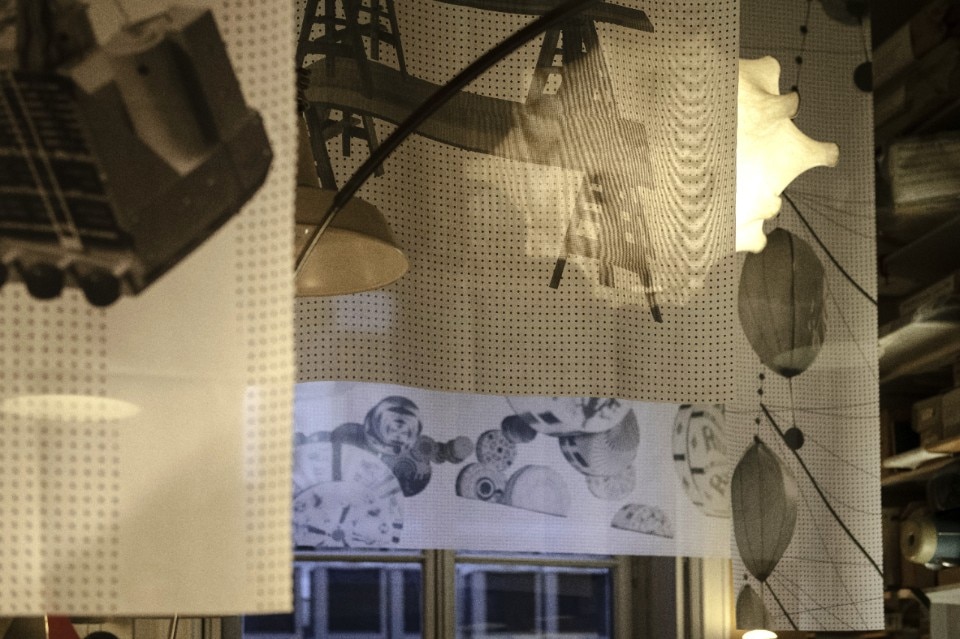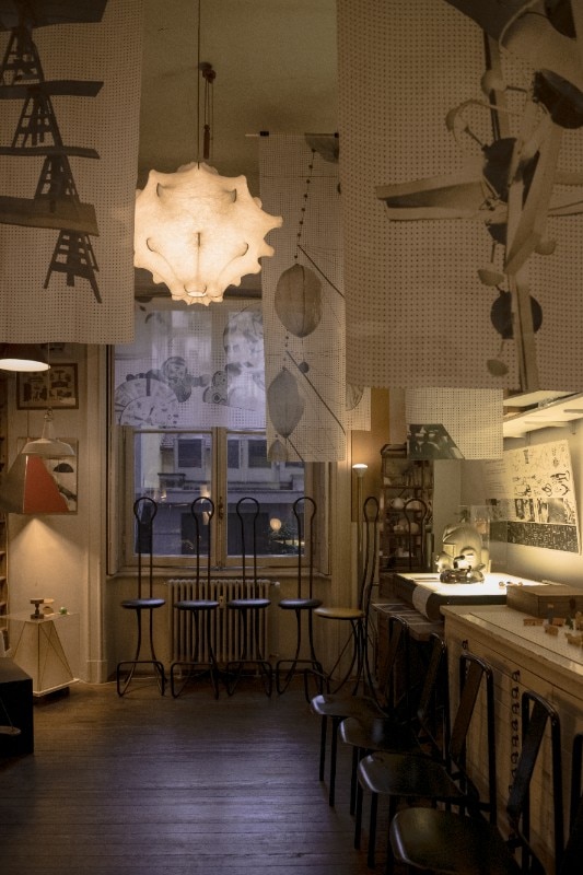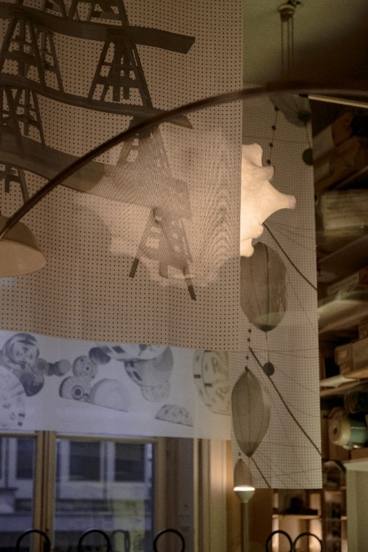 All'ingresso si viene accolti da un omaggio di uno dei più illustri illustratori in circolazione, Carlo Stanga, che ridisegna gli oggetti di Castiglioni su pannelli che definiscono delle quinte di un teatro per marionette: sono personaggi gioiosi che salutano giocosi.
