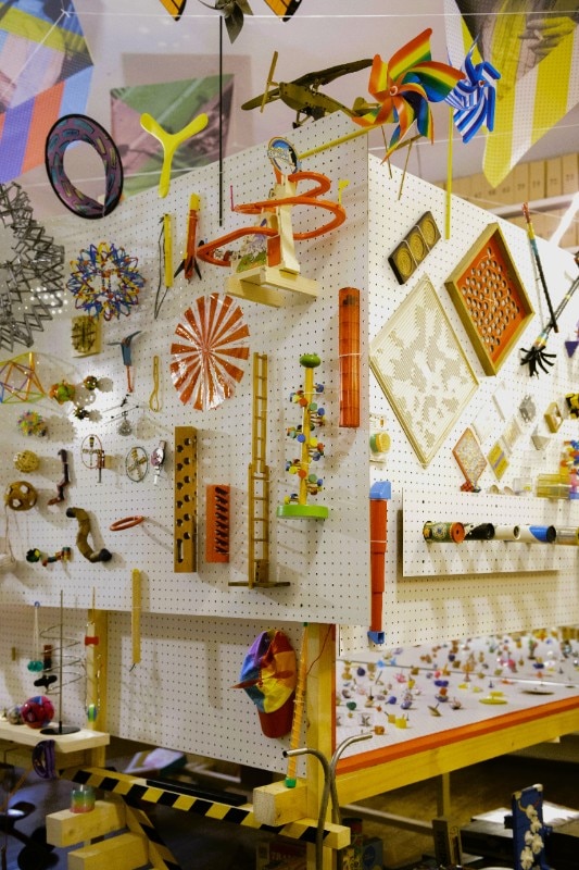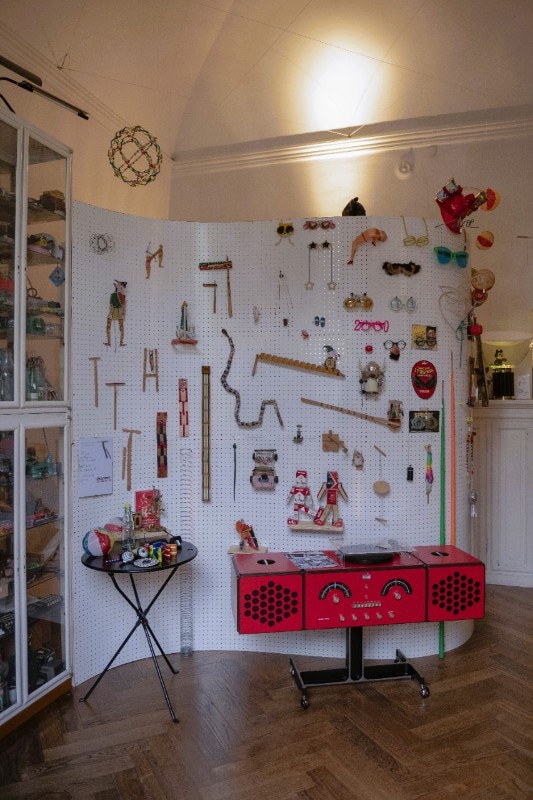 Entrando in questo mondo delle meraviglie, ancora più Wunderkammer che mai, nella prima stanza si trova parcheggiato "un caravanserraglio traboccante di vibranti giochi curiosi”, carico di una vasta collezione oggetti divertenti, iniziata da Achille e poi continuata dai figli Giovanna e Carlo. Ci sono caleidoscopi stratosferici, meccanismi sonori, oggetti volanti, strumenti sapienti che strizzano l'occhio allo svago ma che sono frutto di intelligenze progettuali tipologiche e interattive.