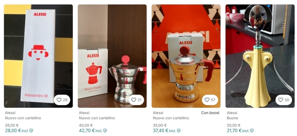 Su Vinted si trovano oggetti immacolati, usati o usurati e, sebbene meno spesso rispetto all’abbigliamento, anche copie e imitazioni. Un occhio attento, però, può imbattersi in rarità, prime edizioni e pezzi fuori produzione. La presenza del design italiano su Vinted è più caotica e disordinata rispetto a piattaforme specializzate come Catawiki o Deesup, dove gli articoli raggiungono prezzi spesso esorbitanti. È la differenza tra partecipare a un’asta privata e rovistare tra i banchi di Porta Portese: meno patinato, ma con la possibilità di scoprire tesori inaspettati.