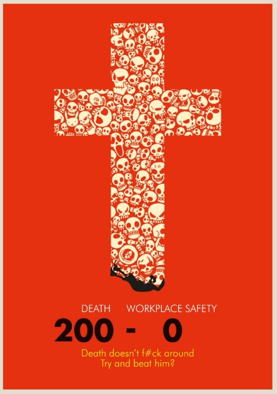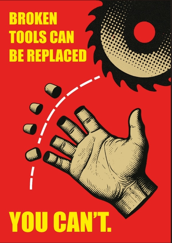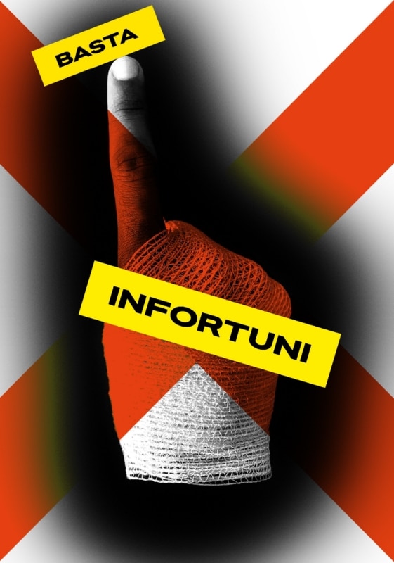 No Safety, No Work nasce da una riflessione collettiva con i giovani studenti dell’Isia di Pordenone, coordinati dal grafico Bruno Morello: dodici manifesti che diventano dodici grida visive, dodici linguaggi diversi per affermare che la sicurezza non è un optional, non è una variabile di bilancio, ma un diritto. C’è chi sceglie la via della denuncia frontale, come Joshua Ejiofor: una croce rossa composta di teschi e il punteggio tragico – 200 a 0 – del match tra morte e sicurezza. C’è chi riduce tutto a un urlo, come Fatin Lachhab: “Chi lavora non dovrebbe dover urlare per essere protetto”. C’è chi lavora sul vuoto, come Giorgia Spignolo: un equilibrista circondato da lettere instabili, sospeso tra caduta e resistenza. E c’è chi mette in scena la brutalità industriale, come Sifi Ibrahim El Khalil: una mano mozzata, una sega circolare e la frase senza appello: “Broken tools can be replaced. You can’t”. Immagini dure, ma necessarie. Non gratuite: frutto di uno sguardo consapevole e di un’urgenza etica condivisa.