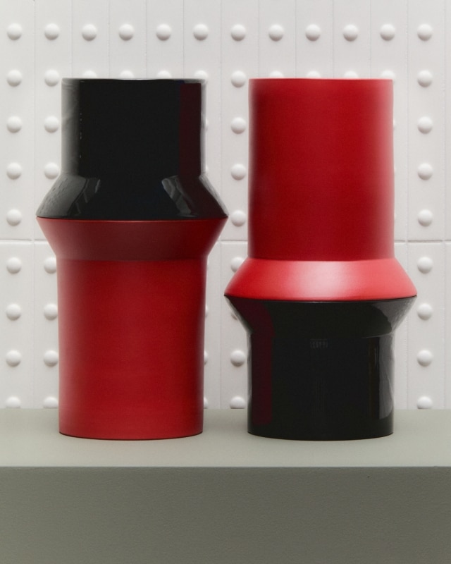 Ma non è tutto: una seconda serie di vasi, chiamata Coppie di Fatto Black, abbandona la palette di colori primari che distingue il lavoro di Du Pasquier e si tinge di nero opaco, usando una smaltatura a immersione. Sette esemplari che sono venduti singolarmente e che ricordano dei totem affiorati da un tempo lontano.