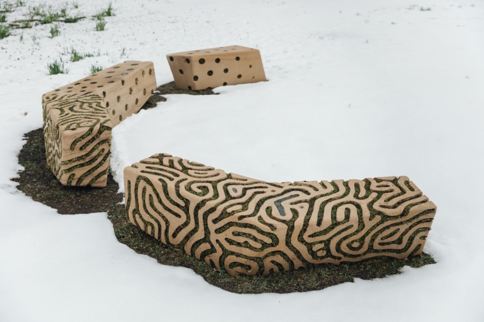 “Le nostre panchine Symbio, ad esempio, fondono la ricerca sui pattern algoritmici altamente grafici del matematico e filosofo britannico Alan Turing con habitat ecologici reali che ospitano briofite e licheni. I licheni, in particolare, possono crescere estremamente lentamente – a volte solo un millimetro all'anno – quindi un'opera può impiegare decenni per ricoprirsi completamente, se mai ci riesca veramente. Ma l'iterazione è presente in ogni opera sperimentale che realizziamo. Spesso è l'unico modo per domare un nuovo processo, una nuova tecnica o un nuovo materiale e trasformarlo in un linguaggio formale coerente o in un nuovo corpus di opere. La natura non è mai permanente, e abbracciare questo concetto è profondamente stimolante.” Laarman e i suoi collaboratori considerano questo progetto un lavoro incentrato su processi lunghi e lenti - processi di crescita, di erosione, di iterazione - trattando l’oggetto come “un organismo stagionale”.