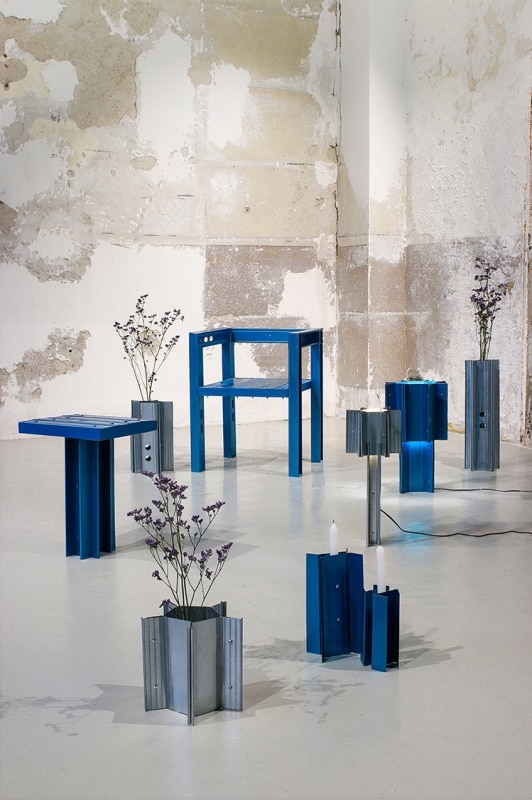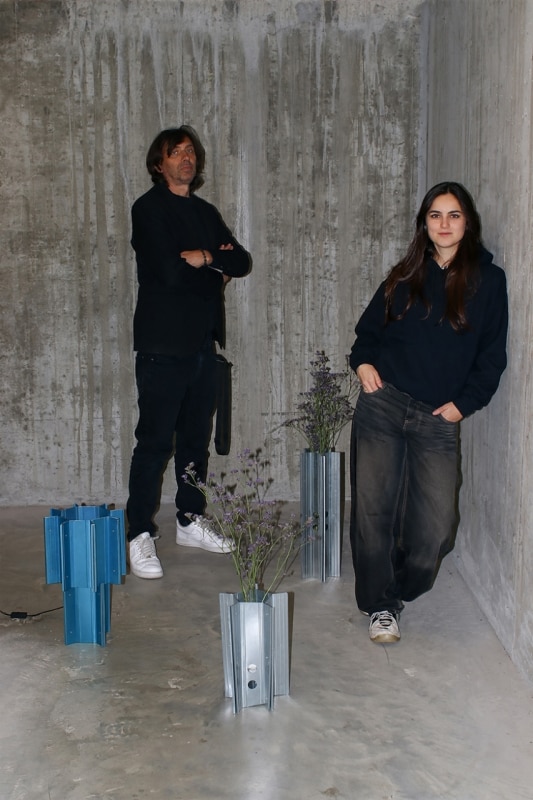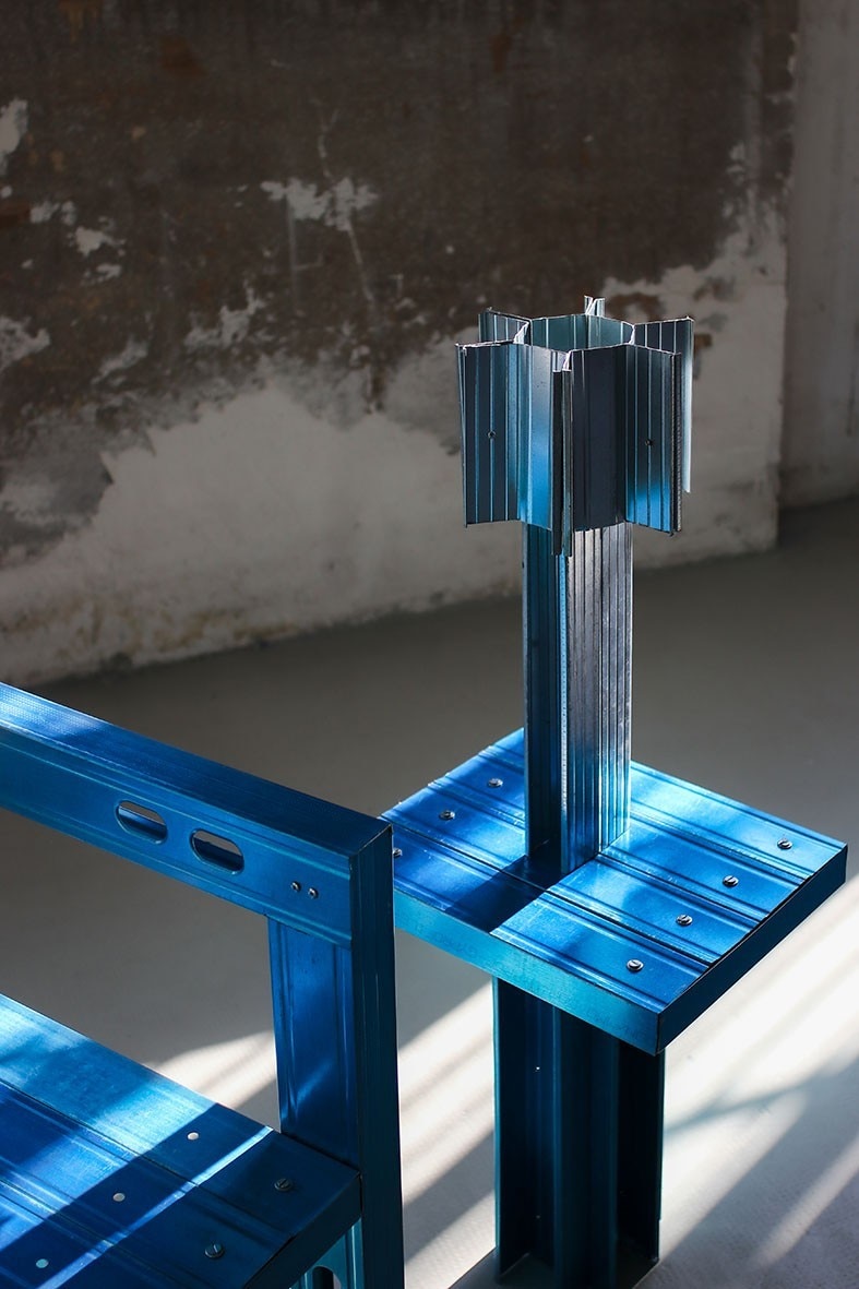 L’aspetto rimane così brutale, profondamente legato al mondo delle costruzioni e, di riflesso, a quello dell’architettura. Tra i riferimenti evocati c’è il Centre Pompidou di Rogers e Piano, il museo parigino che espone impianti e struttura rendendo visibili le proprie “interiora”, ma anche Enzo Mari, in particolare con la sua putrella progettata per Danese: “un oggetto che porta un elemento industriale nel quotidiano senza addomesticarlo, mantenendone forza e identità”, commenta Larcher.