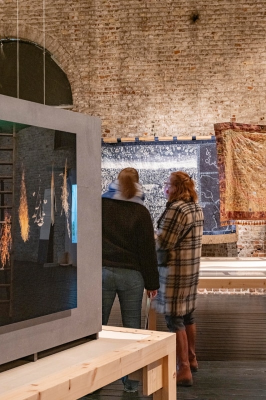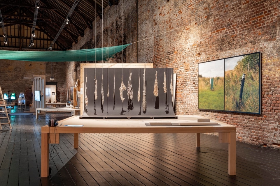 I fronti su cui si innestano le operazioni rigenerative dei designer sono molteplici: dagli ettari di torbiere e brughiere devastati dagli incendi tra il 2017 e il 2022 nei Paesi Bassi, che suggeriscono alla designer Liselot Cobelens un tappeto-mappa, bruciato con un cannello e composto da otto combinazioni di colori, capace di rappresentare gli effetti della siccità e conservare la memoria fisica dell’incendio; all’estinzione degli ulivi in Puglia per colpa della Xylella fastidiosa, che spinge Roberta Di Cosmo a creare un “inventario vivente” di gesti performativi che, nella comunità di Racale, si ripete come un rituale collettivo di lutto e consapevolezza, ma anche come atto simbolico di resistenza che mantiene viva l’identità culturale del territorio; fino agli ecosistemi devastati dalla costruzione di grandi dighe nelle Filippine, che l’artista Cian Dayrit ricostruisce con arazzi su cui tesse mappe indicate dagli abitanti, come reliquie di una memoria collettiva frammentata e ferita.