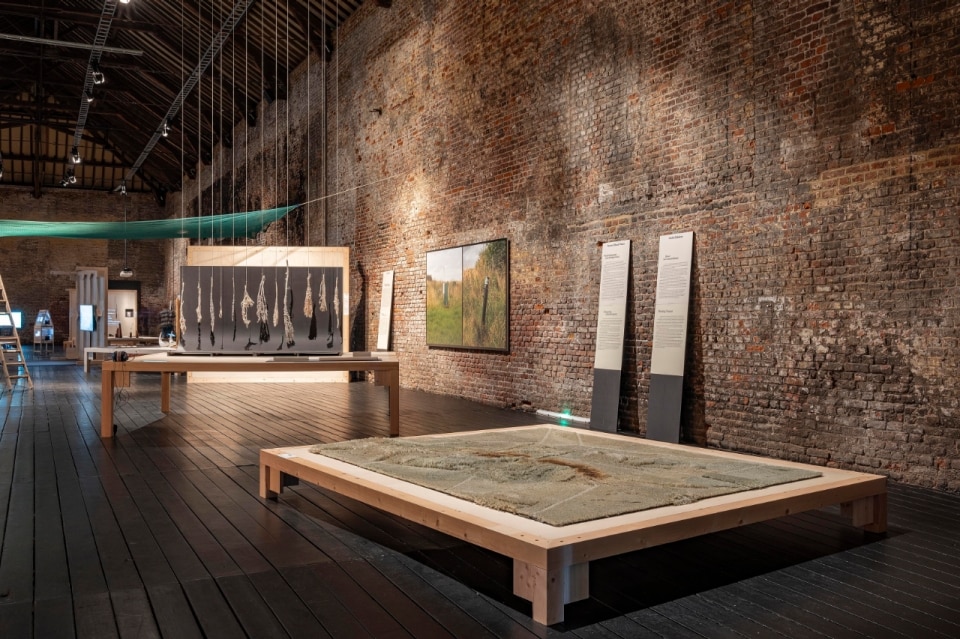 Nell’esposizione sono diversi i progetti che reagiscono all’estinzione di piante o animali – come l’huia (Heteralocha acutirostris), uccello della Nuova Zelanda sacro per i Māori, di cui Sally Ann McIntyre ricostruisce la voce, o come il castoro, di cui l’artista Suzanne Husky invita a riscoprire il ruolo fondamentale nei paesaggi acquatici, creando dighe che favoriscono la biodiversità e riducono i rischi di alluvioni. Questi lavori si inseriscono in una tipologia di ricerca già avviata da Alexandra Daisy Ginsberg con Resurrecting the Sublime (Triennale di Milano, Broken Nature, 2019), dove il profumo di un fiore estinto veniva ricreato per evocare una memoria sensoriale perduta.