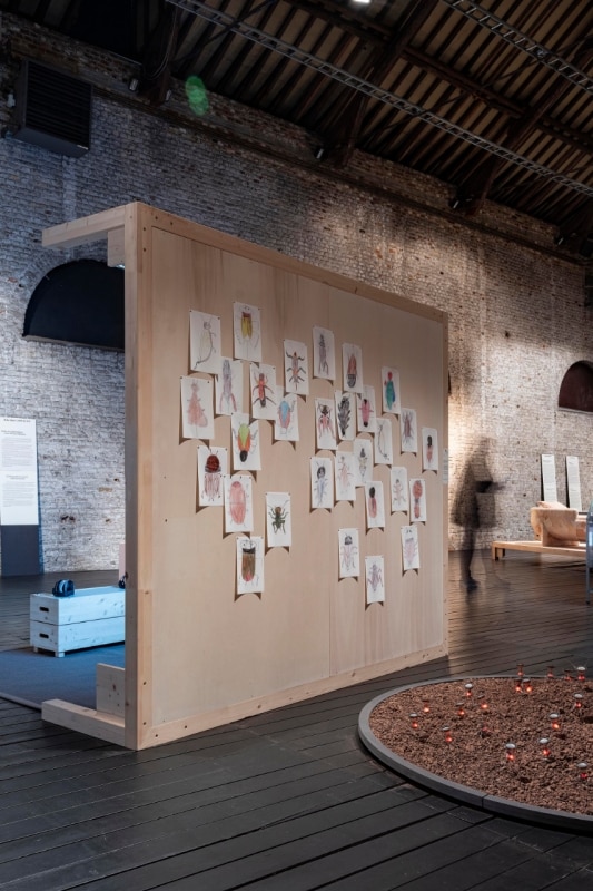 Molto riuscita, la scenografia al tempo stesso essenziale e spettacolare, firmata da Olivier Vadrot, trasforma lo spazio industriale del Grand-Hornu in un territorio sospeso tra laboratorio, archivio e teatro. Tra disegni, video e oggetti, lo spettatore segue il filo dei diversi progetti, passando da un continente all’altro, accompagnato da suoni e profumi che evocano presenze fugaci: tracce sensibili di mondi sempre in bilico, fragili eppure illuminati da una bellezza intensa e inattesa. Secondo le parole dei d-o-t-s, i progetti presentati agiscono come “punti di agopuntura”: preservano tradizioni, materiali, gesti e specie, proponendo la cura come forma di resistenza.