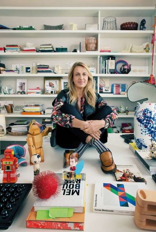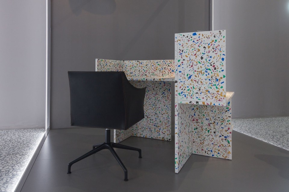 Di un gioioso imbellettamento ottenuto con una pasta di resina tagliata e levigata. A dare l’allarme, una passata veloce con la mano sulla sua struttura. A dare la conferma definitiva il nome, Radicàl Fake. E improvvisamente la scrivania con libreria di Patricia Urquiola per Cappellini appare in tutta la sua potenza: un gioco divertente di citazioni stilistiche e illusioni ottiche. Ovvero la potenza tecnica di riprodurre combinazioni di materiali naturali come il marmo veneziano, ma anche la seconda versione di Fake in legno di “rovere”; e lo spirito visionario che riallaccia il progetto al focus generalizzato sulla ricerca del movimento radicale.