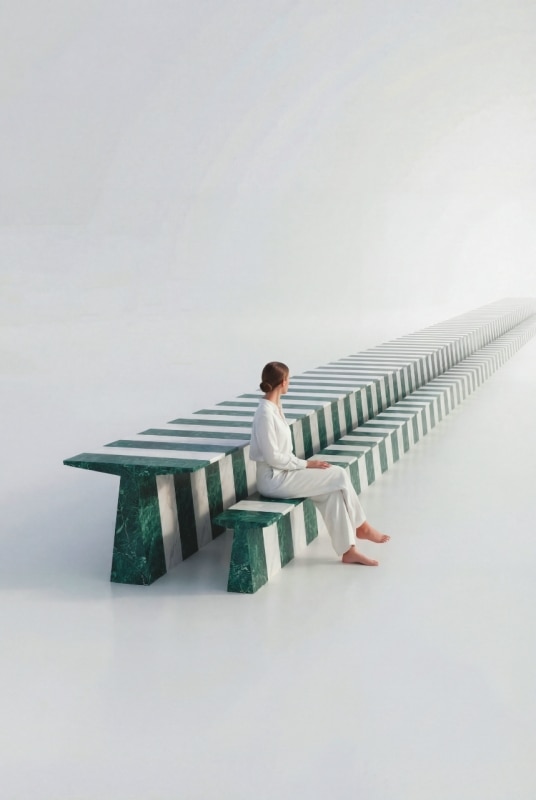 Tradizionali (come pietra e legno) o più sperimentali (come poliuretano espanso e Xl Extra light), i materiali sono da sempre i protagonisti indiscussi di questa settimana. L’innovazione non è solo tecnica, ma anche profondamente culturale, capace di ridefinire il senso stesso del progetto contemporaneo. I materiali diventano inoltre linguaggio critico e portatori di valori ambientali, tecnologici e culturali. Esemplare in questo senso è il lavoro di Luca Nichetto con Xl Extralight, ingredient technology impiegata nel footwear ad alte prestazioni. Airstone, borsa prodotta in Sustainable+, è una riflessione sulla leggerezza industriale, sul rapporto tra massa e superficie. Analogamente, Vertigo di Giulio Iacchetti, tavola di legno curva in Triplostrato di Fiemme Tremila, dimostra come la tradizione possa evolvere in chiave sostenibile. Sul versante lapideo, Martinelli Venezia trasforma il marmo di Bufalini in un medium dinamico, mentre T40 Hack di Finemateria allarga la ricerca sperimentale e radicale sul poliuretano con un sistema di sedute, poggiabraccio e supporti per laptop che a Dropcity si innesta su una struttura preesistente.