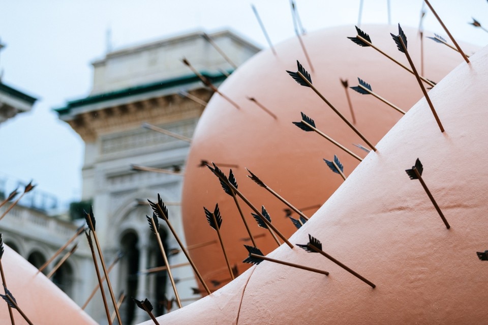 “Oggi, a distanza di 50 anni, l’esistenza della donna è più minacciata di allora, ma fortunatamente sono anche sempre di più le voci che si levano in sua difesa. In certi Paesi, ci sono donne che non possono uscire di casa da sole”, dice il designer. La poltrona è trafitta da 400 frecce a ricordare i numerosi abusi che la donna subisce quotidianamente ed è circondata dalle teste di sei belve feroci, simbolo della crudeltà dell’uomo. “Per le donne resta l’impossibilità di lavorare alla pari degli uomini. Nel mondo dell’architettura, Gae Aulenti e Zaha Hadid hanno aperto la strada, hanno insegnato cose che molti uomini non sono tutt’ora in grado di fare. Credo però che a salvare il mondo saranno le donne. E voglio che questa scultura sia l’occasione per discuterne”. In piazza, la gente si ferma, legge, guarda e scatta qualche foto. C’è chi s’indigna, chi è d’accordo, in pochi passano oltre senza guardare.