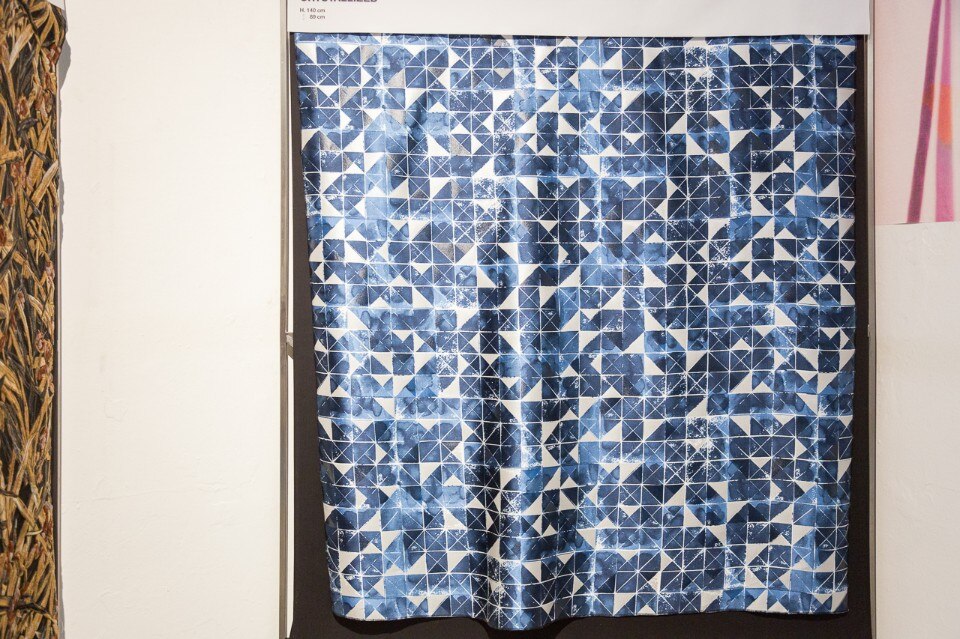 Rispetto alle pulite geometrie macro della prima collezione (2015), Progetto Tessuti quest’anno sorprende con una sofisticata ricchezza che gioca sul limite del possibile. Kiss me tiger e Interstellar (che è anche il nome di un tessuto) aggiungono al grande impatto visuale una componente tattile e tridimensionale. Il primo, con base ciniglia, rappresenta letteralmente il manto di una tigre; il secondo ricorda le atmosfere pulite e mistiche della copertina di Blackstar, album testamento di David Bowie.