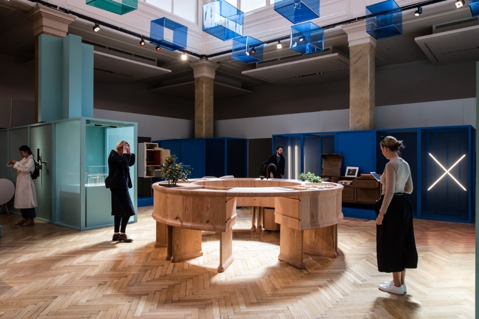 Interessante il Blushing bar, circolare, in rovere rosso, nato dalla collaborazione della coppia di designer Zoe Chan e Merlin Eayts con Sebastian Cox, azienda esperta nella lavorazione dei legni pregiati. La struttura bar comprende dieci spazi di lavoro, a omaggiare i dieci anni di Wallpaper, ognuno dedicato ai diversi step di preparazione del cocktail, dalla spremitura degli agrumi all'aggiunta del ghiaccio.