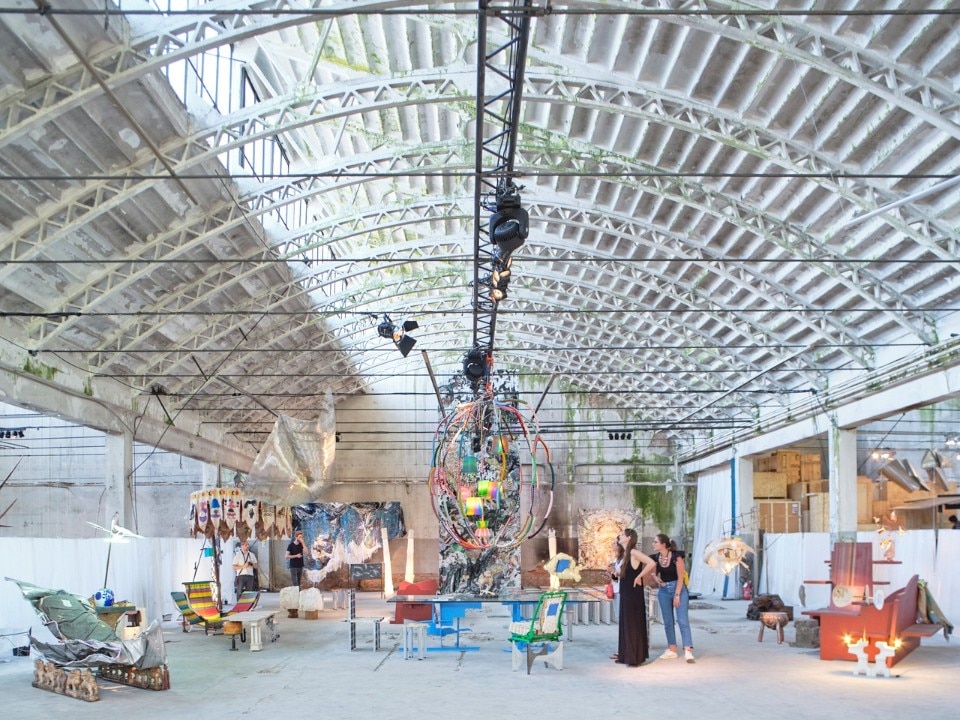 Per chi non li avesse visti, i cosiddetti Baranzate Ateliers sono stati il takeover più inedito di tutti, e non solo per distanza: 3000 metri quadrati di capannone di proprietà Necchi, fuori da qualsiasi quadrante o distretto, nessun intervento di restauro, una grande sala di esposizione per i pezzi da collezione di 23 designer, con arazzi e tavoli di marmo sopra i pavimenti in cemento spaccati, un dancefloor nella sala controlli, l’accesso da un buco nel muro tra due ali di camper.
