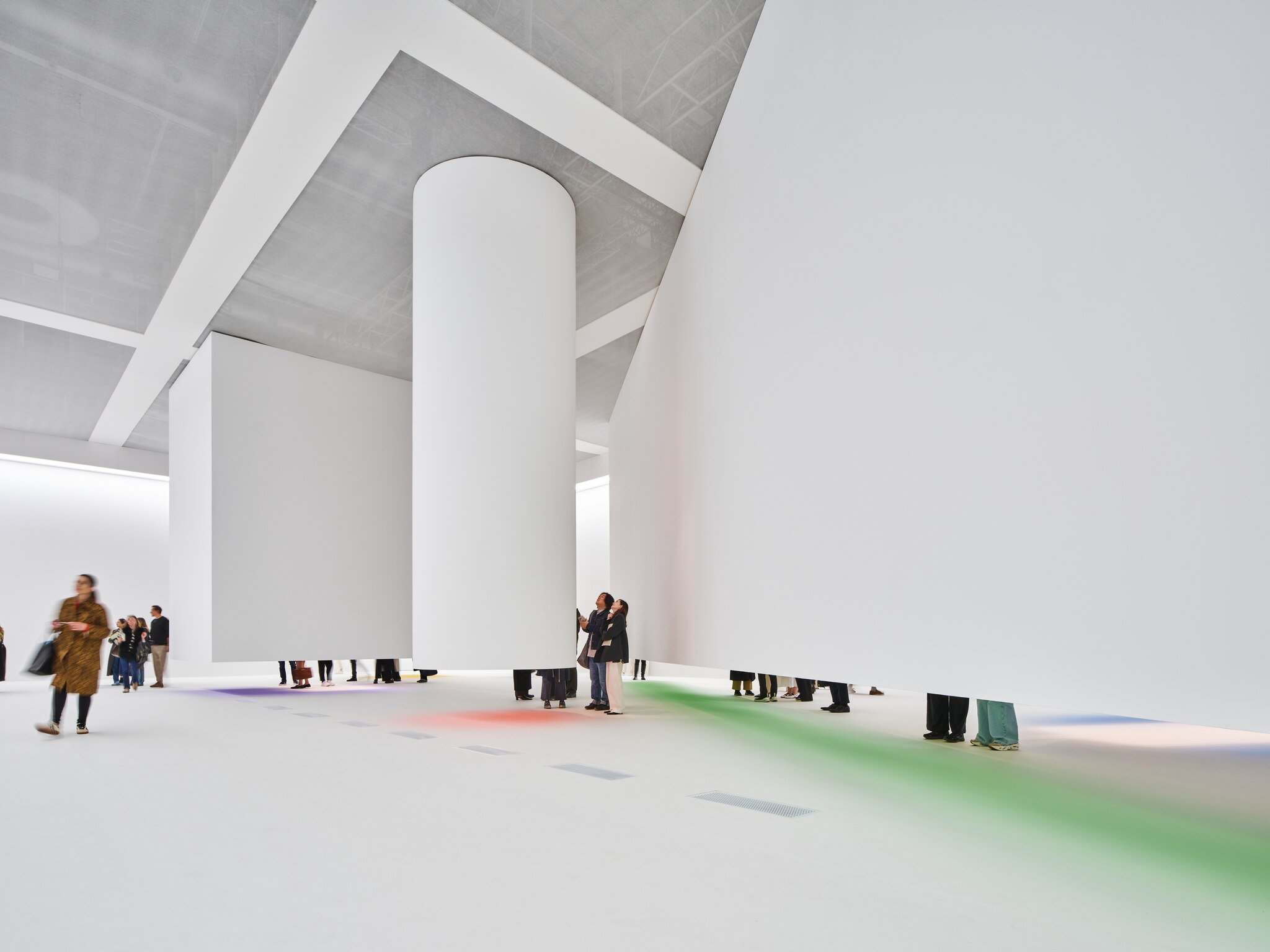 L'esperienza è immersiva perché la decorazione prosegue sul pavimento della corte e ricompare anche sulle sue superfici verticali, all'interno delle finestre. Ancora più immersivo è l'interno del cubo: soffitto e pavimenti specchiati e pareti percorse da onde colorate interattive, che reagiscono con i movimenti dei visitatori. È uno spazio intimo e allegro, che invita a "collaborare" con gli altri ospiti per moltiplicare le variazioni e le sfumature.