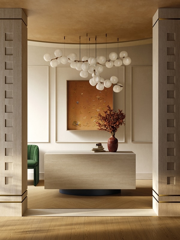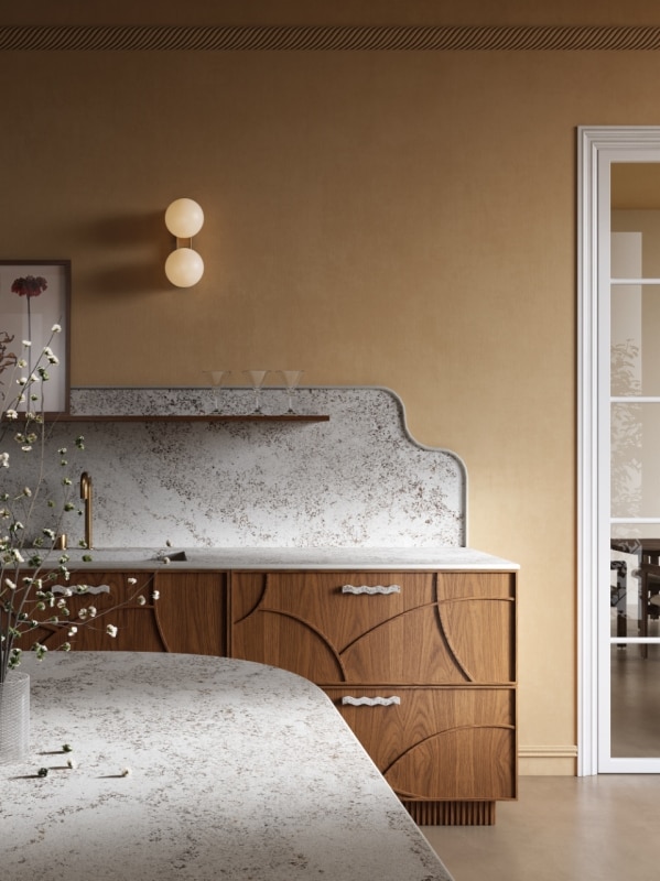 Accanto a questa visione, un altro brand dell’ecosistema Iris Ceramica Group, Sapienstone presenta tre nuove superfici ceramiche dove la materia si interpreta come un racconto: Travessa, Breccia Rosa 4D e Muschelkalk. Tre espressioni diverse, accomunate da una profonda ricerca estetica e tecnologica.