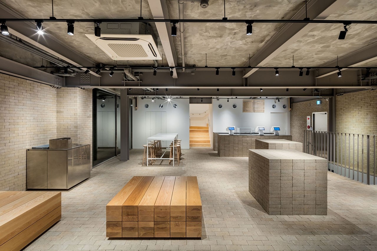 Nel bar di Ginza, lo spazio nel basement si distingue per la scelta di mattonelle bianche per il pavimento, che diffonde la luce e dialoga con il legno di quercia e la pelle delle sedute. Nel Samcheongdong Cafe di Seul, i mattoni sono posati a secco, in continuità con l’esterno dell’edificio. Nel flagship di Ko-tu, sempre a Tokyo, la conversione della vecchia area di torrefazione in nuovo spazio per il caffè ha levigato il tocco industriale utilizzando sedute in legno di quercia e dando maggiore vibrazione allo spazio con un pavimento in LSL rivestito di resina colorata. La leggerezza e la fluidità rimangono al cuore dei tre progetti, rendendo l’atmosfera rarefatta e allo stesso tempo più rilassata, conciliante: “Ho risposto al brief cercando di ingentilire lo spazio con un’atmosfera soft, lontano dal tratto forte che di solito i caffè Blue Bottle esprimono.”
