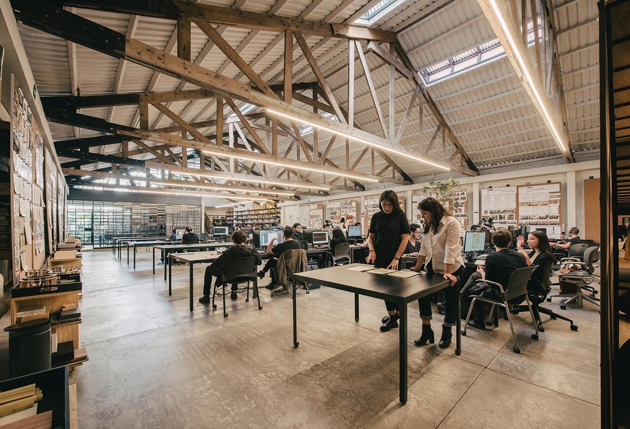 Nel quartiere di Roma Norte a Città del Messico, lo studio di architettura e design Esrawe converte una sala da ballo degli anni ’50, atipica rispetto alle caratteristiche edilizie della zona, nel suo nuovo quartier generale. Spogliato di ogni controsoffittatura, lo spazio porta alla luce le vecchie travi in legno e trova nella scelta essenziale di rivestimenti in metallo e cemento una chiave per convogliare funzionalità e identità dello studio in un ambiente sobrio e operoso.