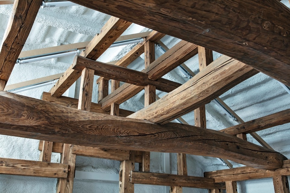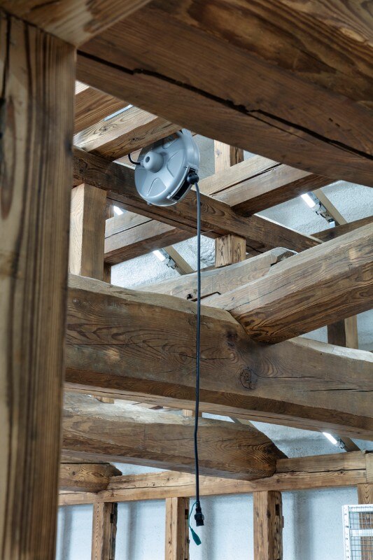 L'ispirazione arriva casualmente quando uno dei carpentieri, durante i lavori di riassemblamento della struttura di legno, improvvisa un portautensili servendosi dei fori esistenti nei pilastri e utilizzandoli secondo la giunzione ad incastro a mortasa e tenone.