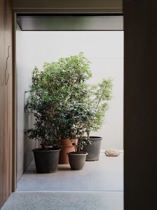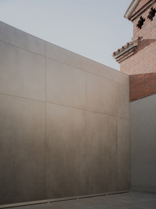 Unico gesto libero e ludico, la realizzazione di un patio completamente invisibile all’esterno, con vista sul cielo e sugli antichi camini in mattoni rossi dell’edificio contiguo.
