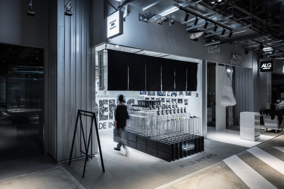 All’interno di questo contenitore, i progettisti concepiscono lo spazio destinato al marchio come un negozio all’angolo di una strada di Shibuya “arredato” da materiali grezzi e industriali, in contrapposizione all’estetica omologata dei sempre più numerosi spazi commerciali che proliferano in questo pezzo di città.