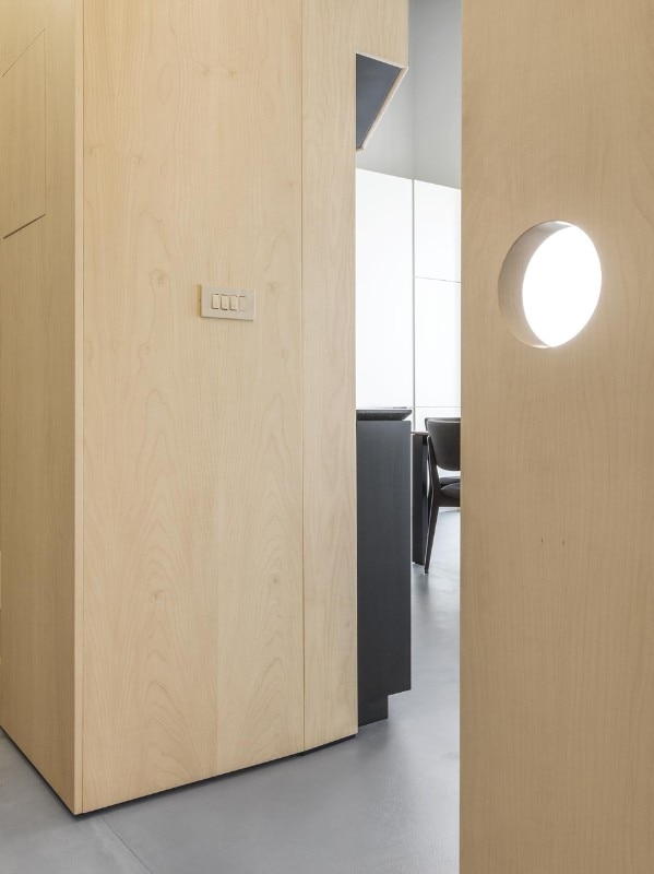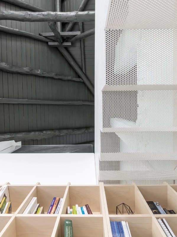 Sottoposto a vincoli della Sovraintendenza dei Beni Architettonici per quanto riguarda i prospetti, l’intervento si concentra sugli interni attraverso l’abbattimento dei tramezzi e l’inserimento di un’imponente, seppur essenziale, scala bianca in lamiera microforata per collegare i due livelli. Intorno, mobili su disegno distribuiti su tutti gli ambienti prediligono la pulizia di finiture in betulla.