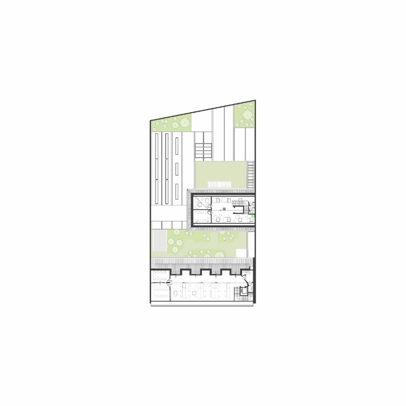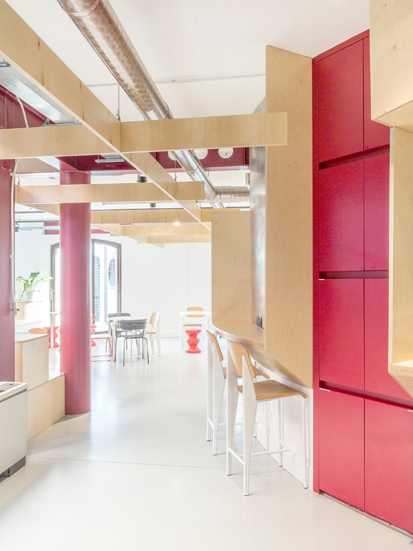 Connesse da specifici percorsi, le diverse aree (i team di marketing, di sviluppatori IT, di amministrazione, delle risorse umane, di sviluppo aziendale, di gestione degli account e il team legale) sono distribuite attorno a un atrio centrale che diventa fulcro dell’intero headquarter e spazio comune. Al piano terra sono stati aggiunti pannelli separatori in policarbonato, scale e blocchi per i servizi; al primo piano i due edifici separati dal cortile più grande sono connessi tramite una passerella, e il livello -1, che da solo occupa 1.000 mq, serve da luogo di condivisione.