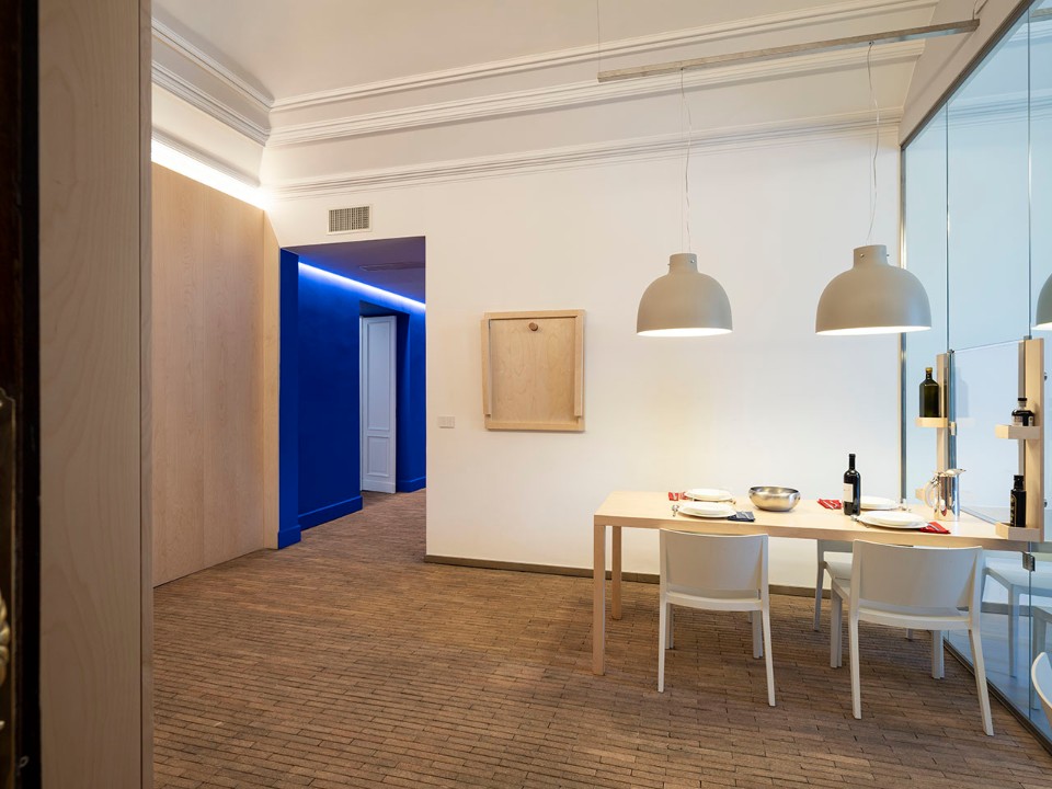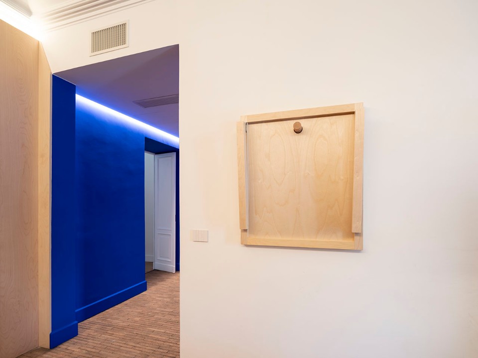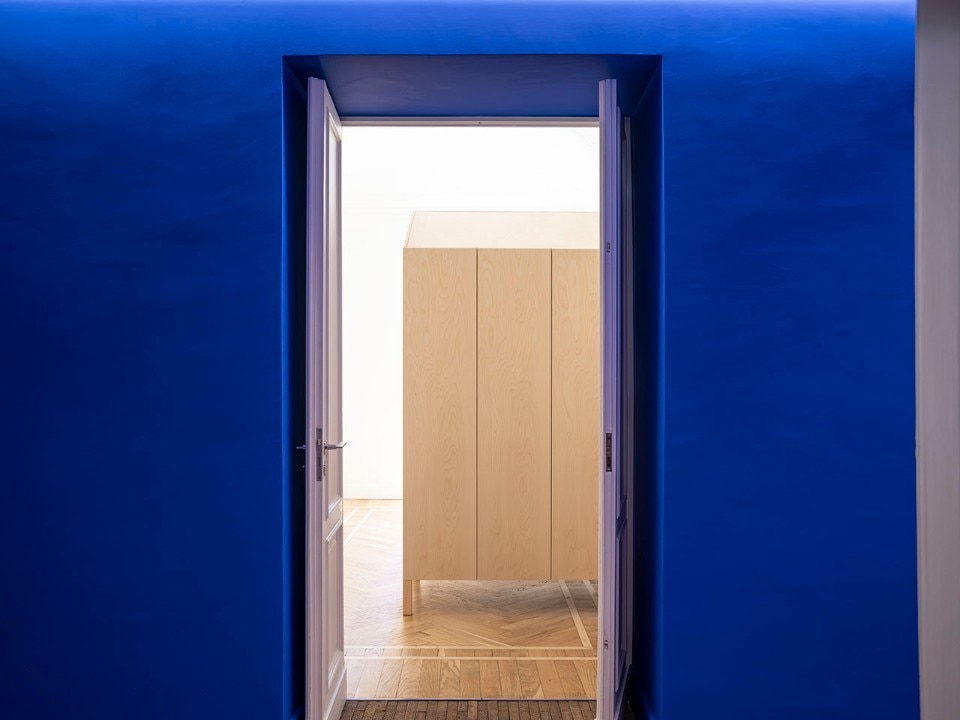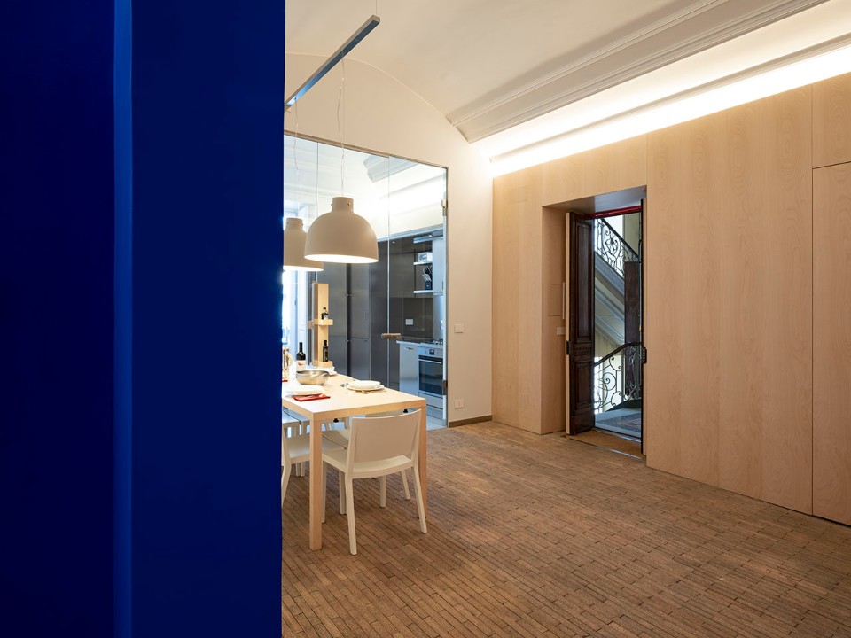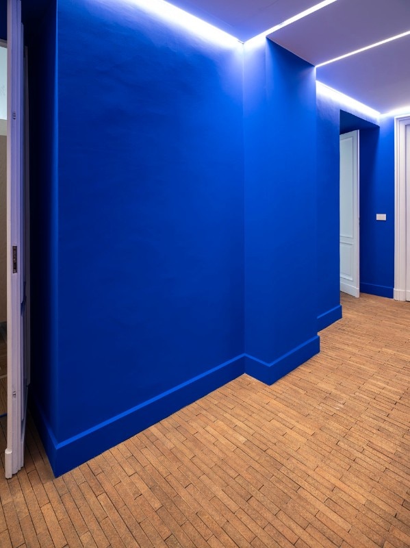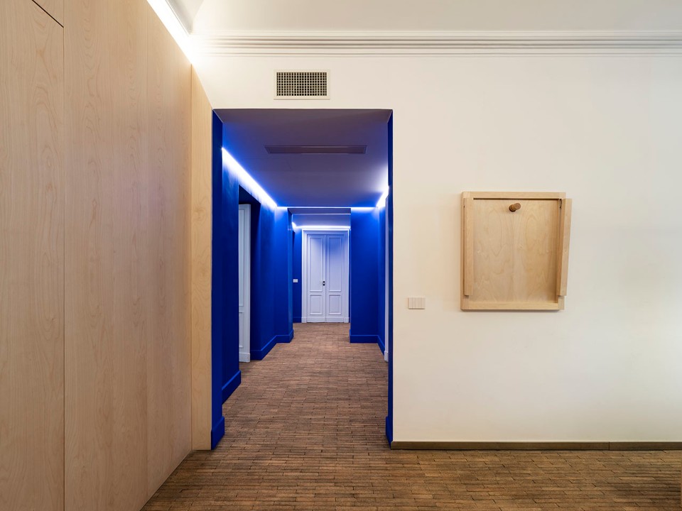 Pareti blu elettrico in un appartamento ristrutturato di Torino
