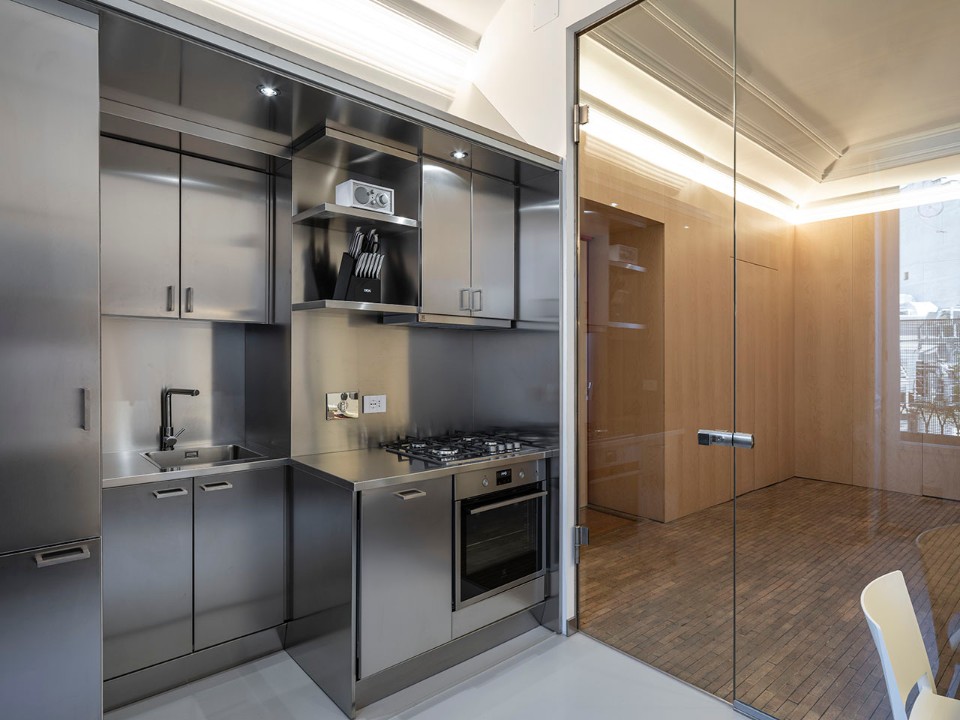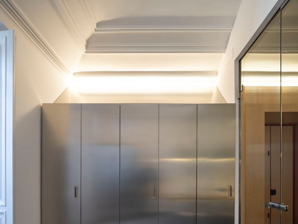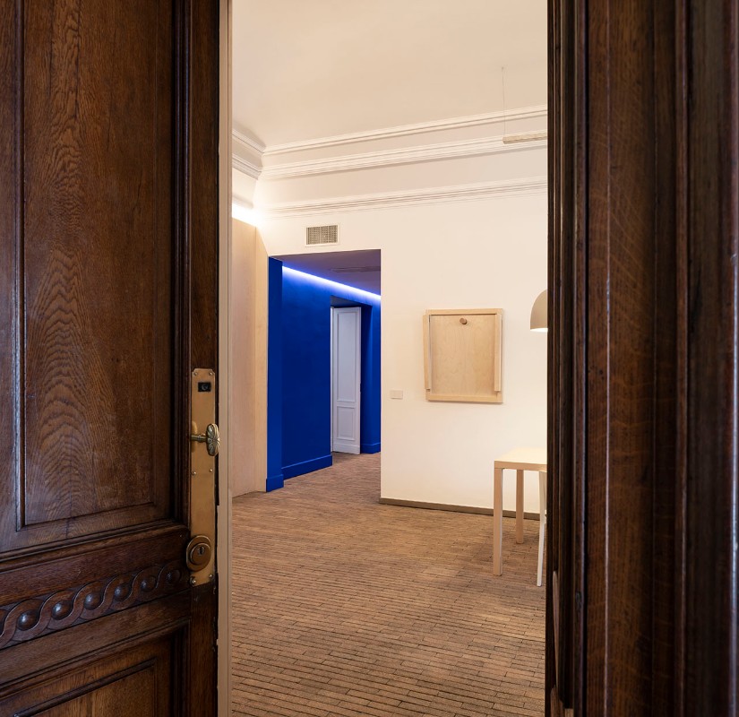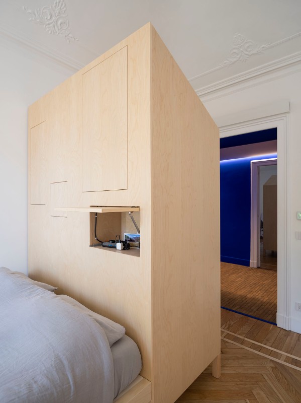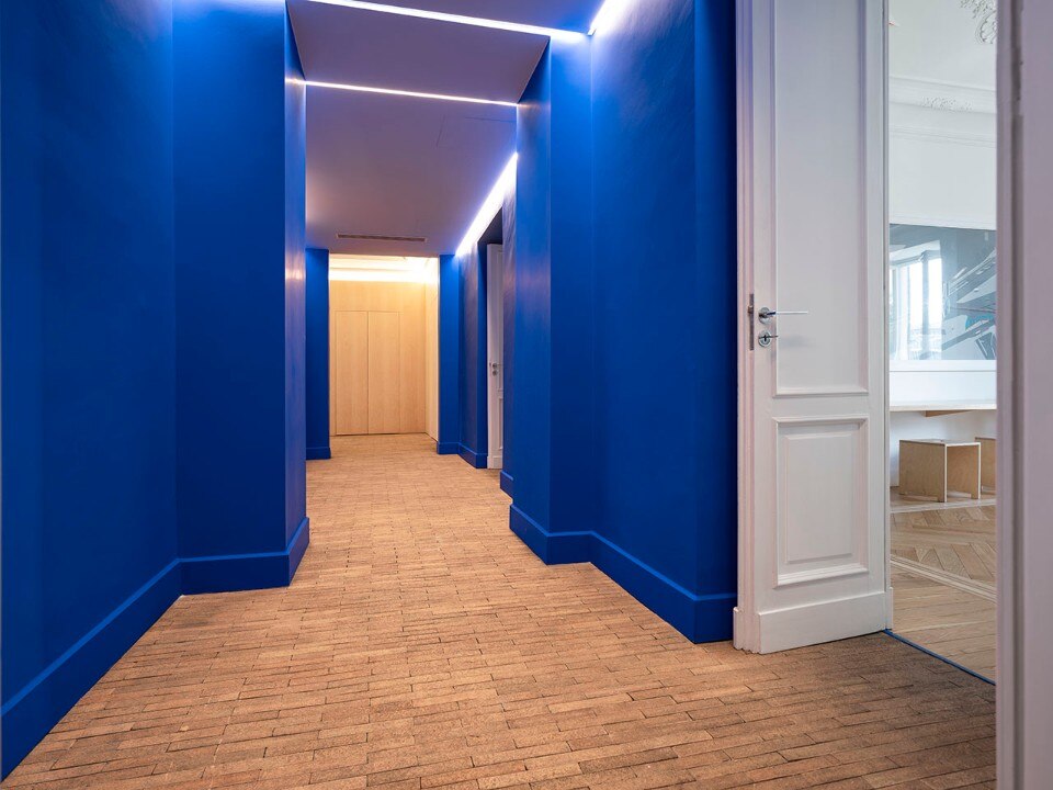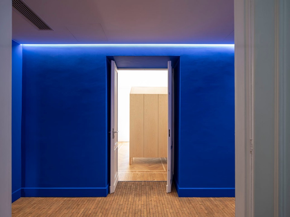 Pareti blu elettrico in un appartamento ristrutturato di Torino
