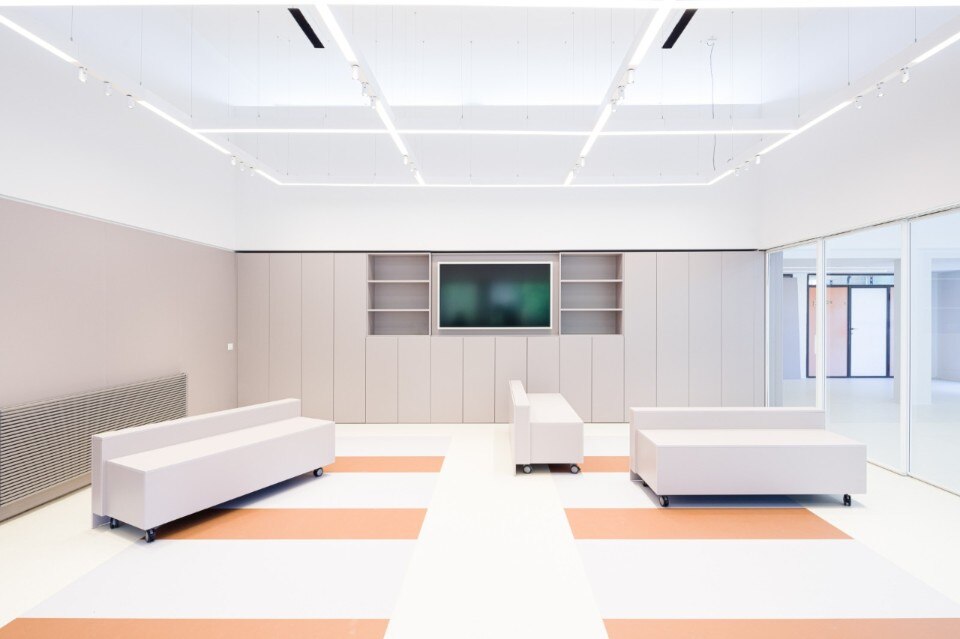 Il progetto è caratterizzato da pareti mobili e arredi studiati per coinvolgere gli studenti. “Un dispositivo”, spiega Giorgio Donà “per apprendere, condividere, progettare e costruire”. L’aula è dotata di sistemi tecnologici avanzati e studiati per migliorare la qualità della didattica a distanza e dell’aria.