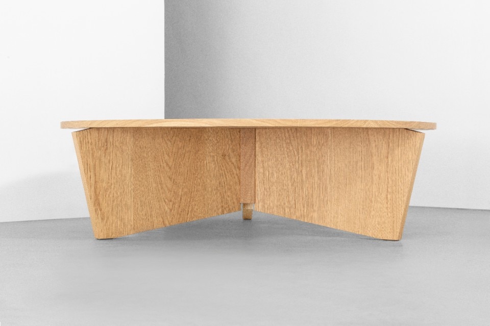 Così, in questi pezzi concepiti tra il 2018 e il 2021 si rintracciano sia segni stratificati, sia nuove intuizioni risultanti dall’ossessiva interrogazione degli assunti progettuali, delle forme e dei materiali. Innanzitutto il legno: l’intima diffidenza verso l’angolo retto, per esempio, conduce a sagomare gambe trapezoidali simili a schegge incastrate (tavolo To-Tondo), ma anche gambe scavate come scafi in miniatura (tavolo Tav 1).
