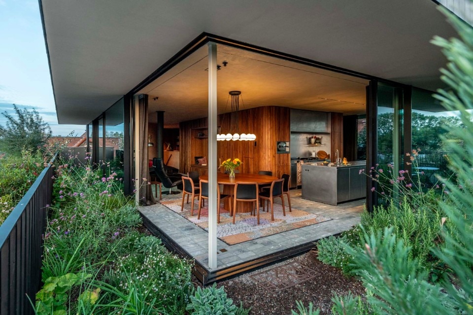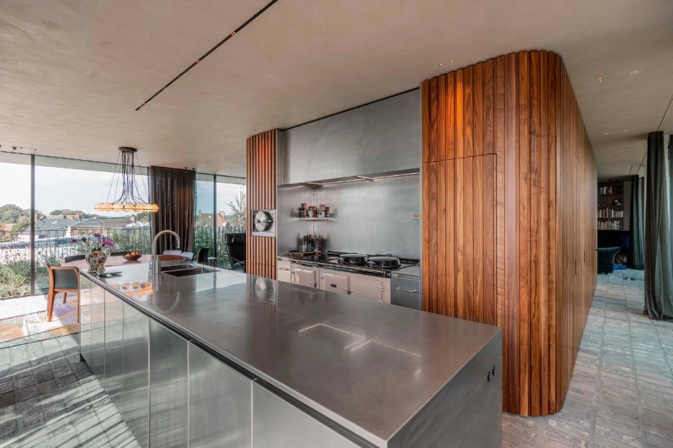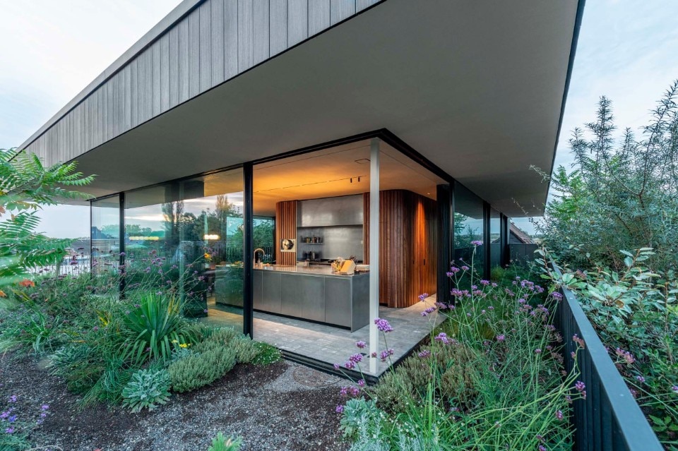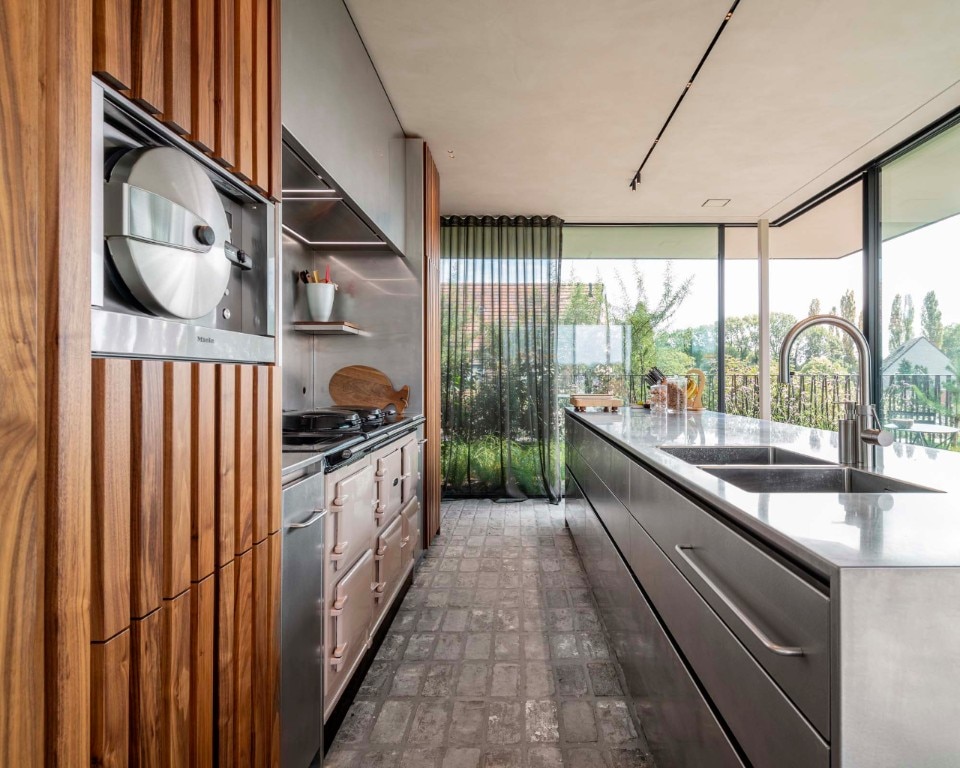 Un giardino pensile che abbraccia un'abitazione su tre lati e penetra visivamente e fruitivamente nello spazio domestico è ciò che consente di fuggire dal trambusto urbano in un’oasi di pace a contatto con la natura, senza rinunce di confort: è il primo dettaglio fondamentale di un attico duplex al terzo piano di un fabbricato a Ternat, in Belgio, un interno progettato da Objekt Architecten.