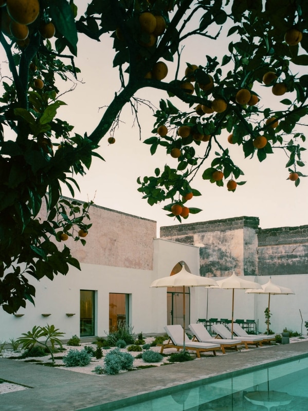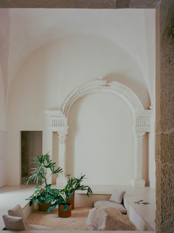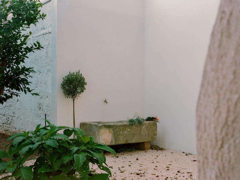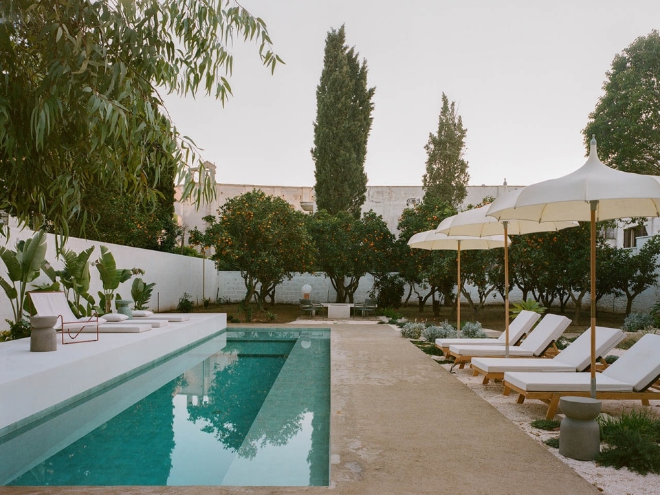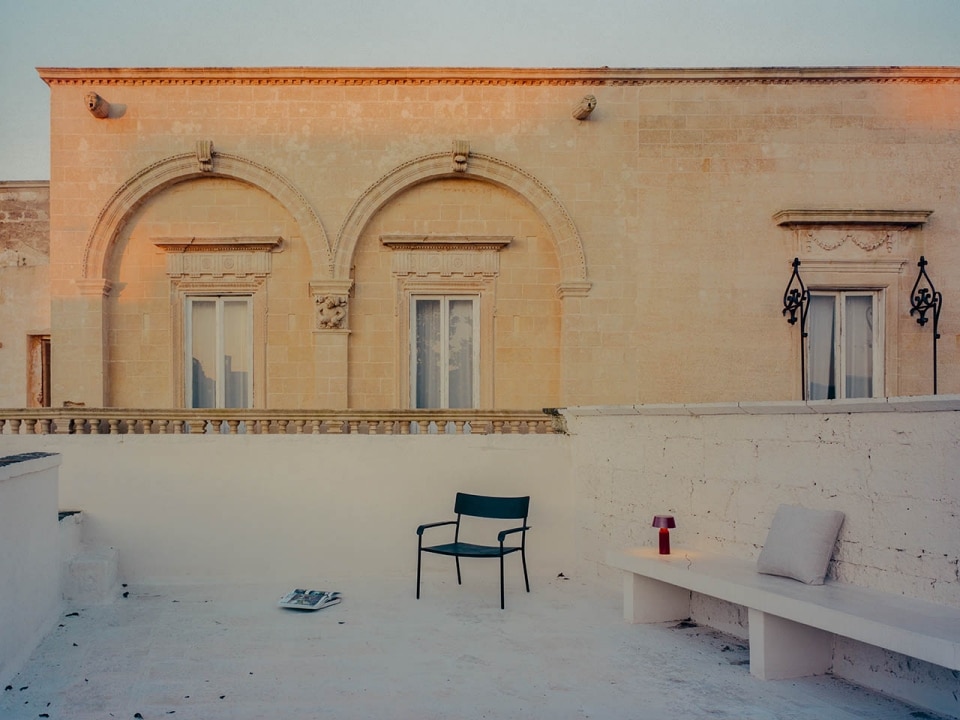 È un esercizio, quello che soppesa la relazione tra territorio, tradizione e contemporaneità in vista di un allineamento con i canoni dell’attrattività globale, che nel Salento è all’opera da decenni. A fare la differenza, come spesso accade, è però la capacità di esecuzione. Nel caso di Palazzo San Vito, l’effetto atmosferico dell’insieme si distingue per la capacità di integrare gli elementi storici più salienti – la pietra leccese, i vecchi intonaci decapati, la graniglia originale, i medaglioni con mosaici- con un minimalismo aereo e ritmato, che lascia aperta la possibilità di far respirare le stratificazioni dei diversi interventi.