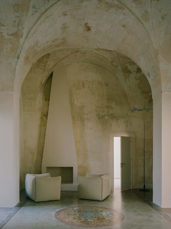 Fluido e cunicolare, lo spazio è puntellato da una successione di ambienti comunicanti, resi spesso imponenti dalla presenza delle tipiche volte a stella. Oltre alle quattro camere per gli ospiti, ampi spazi comuni puntano su pochi arredi su disegno e da catalogo, trasformando la rarefatta densità decorativa in un’opportunità per favorire l’otium mentale.