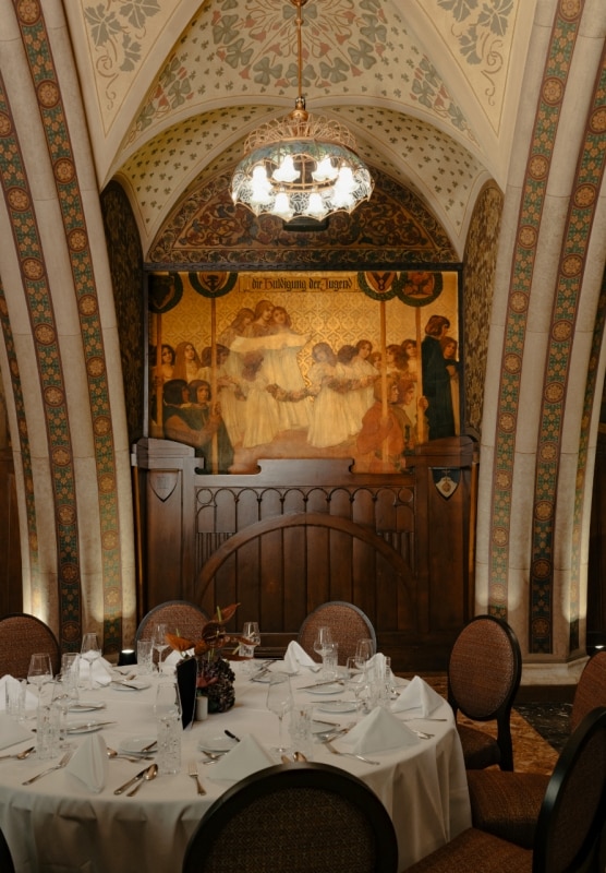 L’aspirazione ad incarnare il salotto buono del gusto cittadino distingue anche il Rathauskeller di Vienna, ospitato nel municipio in stile neogotico costruito da Friedrich von Schmidt tra il 1872 e il 1883 sulla celebre Ringstrasse, l’ampio viale di circonvallazione fatto realizzare sulle vecchie mura della città da Francesco Giuseppe, che lo immaginava come una dimostrazione teatrale e tangibile dello splendore dell’impero austroungarico.