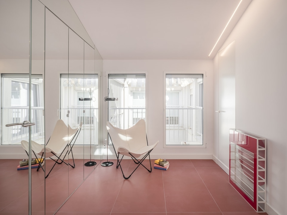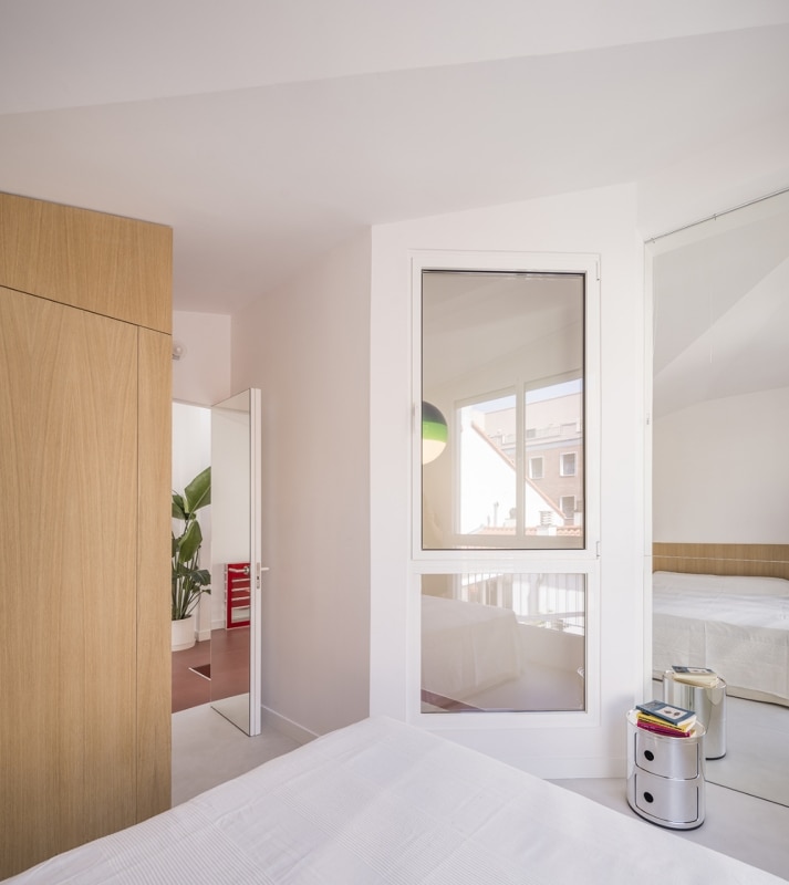 In un appartamento di 80 mq a Madrid, un duplex collocato in uno stabile del 1900, gon architects ha realizzato una ristrutturazione completa dello spazio, per assecondare le nuove esigenze e lo stile di vita del proprietario e donando nuovo carattere agli spazi grazie alla reinterpretazione dell’idea di connessione verticale fra i due livelli della casa.