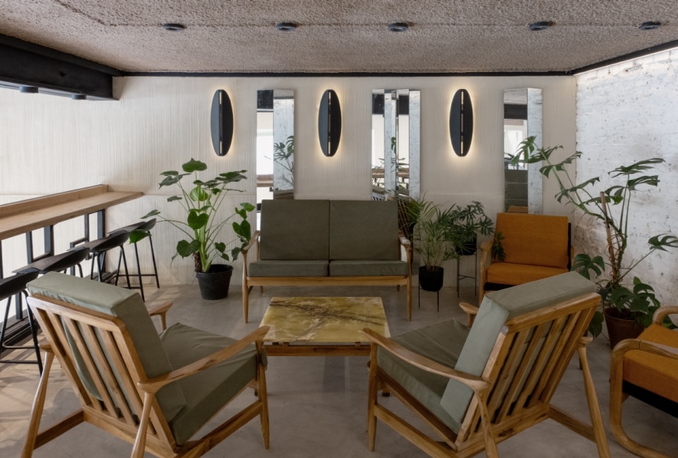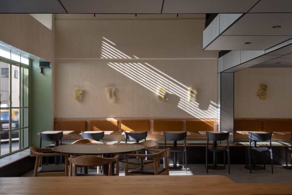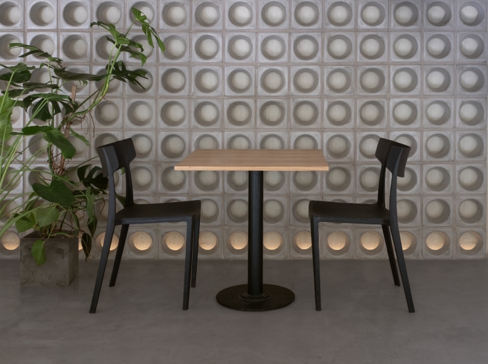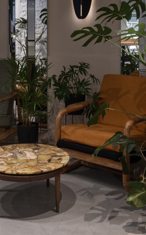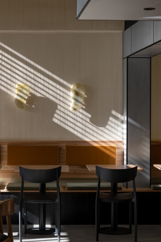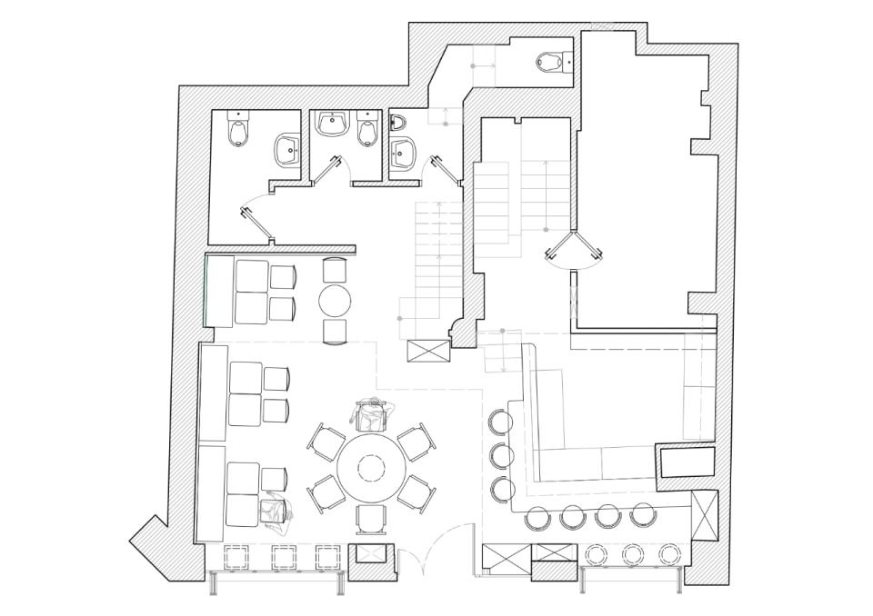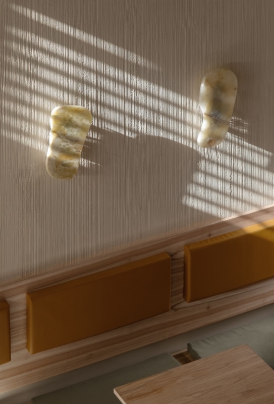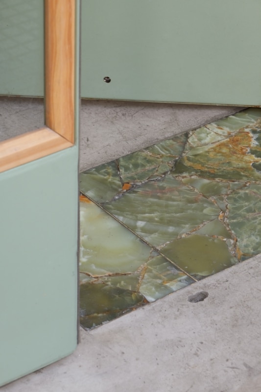Al piano terra dell’Edificio Kairuz, uno degli esempi più significativi di architettura Liberty di Buenos Aires e recentemente ristrutturato, lo studio di architettura Miyao ha curato il progetto di Café Babalú. L’intervento si sviluppa su due livelli: quello affacciato sulla strada, dove le grandi vetrine garantiscono un rapporto diretto con lo spazio urbano e un piano superiore più raccolto, dove la luce filtra attraverso persiane metalliche che funzionano come brise-soleil. Verniciati in un caratteristico verde salvia, gli infissi costituiscono l’elemento di continuità tra il linguaggio dell’edificio storico e il nuovo intervento. Il colore ricorre in tutti gli elementi metallici e dialoga con l’architettura dell’Edificio Kairuz, costruito nel 1913 e riconoscibile per i balconi curvi che ricordano palchi teatrali e per la cupola metallica che ne conclude la composizione. Proprio per valorizzare le qualità dell’involucro esistente, il progetto del café è impostato secondo una logica di sottrazione. All’interno lo spazio si articola attraverso pochi elementi, definiti soprattutto dalla ricerca sui materiali: superfici in onice dialogano con il ferro verniciato e contrastano con il calore del legno chiaro utilizzato per boiserie e arredi.