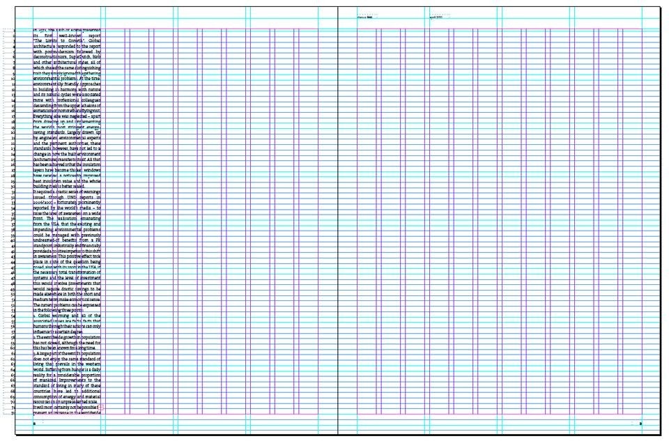 La gabbia di base è una struttura molto semplice a 12 colonne. Il numero 12 permette, com'è facile intuire, molte differenti combinazioni numeriche, che si riflettono nella flessibilità dell'organizzazione orizzontale della pagina: due colonne di testo principale più una per le note in quegli articoli con una maggiore quantità di notazioni accessorie; una più snella a tre colonne di testo pieno per i servizi più brevi, dove la minore giustezza consente di riempire l'intera superficie della pagina o di lasciare un'intera colonna per le titolazione secondarie.