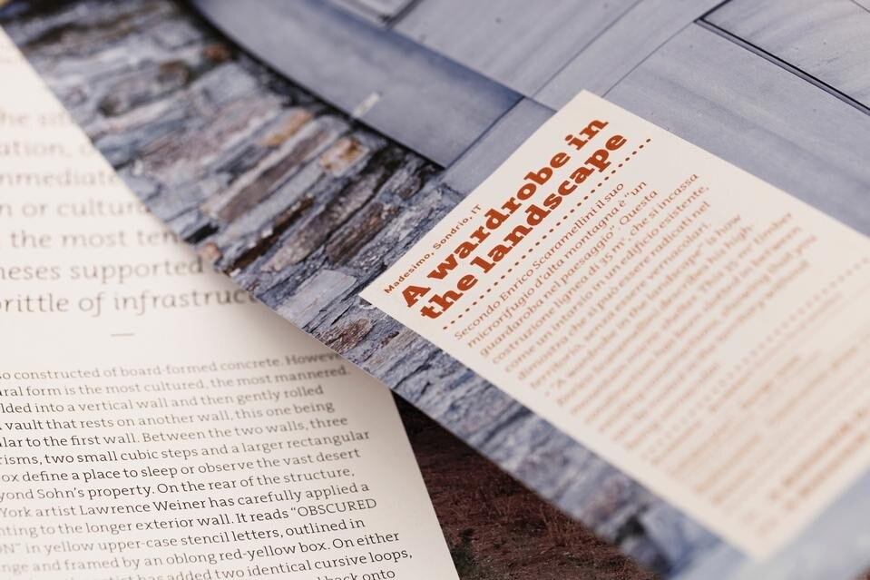 Per le didascalie, le informazioni più tecniche e puntuali (ad esempio tutti i nomi degli autori) e, in generale, per i corpi piccoli, abbiamo scelto l'Aaux: è una font forse non molto nota, ma a mio parere una valida alternativa all'Akkurat, un carattere stupendo ma oggi forse un po' inflazionato.