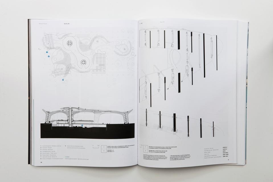Uno dei primi passi che abbiamo mosso nell'iniziare a pensare alla nuova Domus è stato verificare quanto testo, quante foto e quanti disegni, rispettivamente, occupavano lo spazio fisico di una singola pagina nelle passate edizioni. La nostra impressione, poi verificata da un diagramma visivo di quest'analisi, era che soprattutto il disegno non avesse più lo spazio e la chiarezza di lettura che dovrebbero essere propri di una rivista che si occupa in primo luogo di architettura e design. Da qui la scelta di prevedere almeno una doppia pagina di piante, sezioni e disegni di dettaglio per ogni progetto. Ora su Domus non vi è sostanzialmente alcun disegno architettonico al di fuori di queste grandi pagine; l'abbondanza di spazio bianco permette non solo di studiare il disegno senza elementi di disturbo, ma anche, forse banalmente, di facilitare l'annotazione e la copia dei disegni stessi. Copiare un buon progetto, ridisegnarlo, è l'unico modo per comprenderlo veramente e assimilarne la natura progettuale.