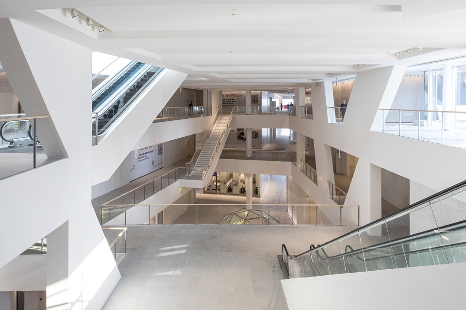 Metà museo, metà centro commerciale, il Sea World Culture and Arts Center è il risultato della disposizione dinamica di volumi architettonici rigorosamente bianchi sul parco in riva al mare