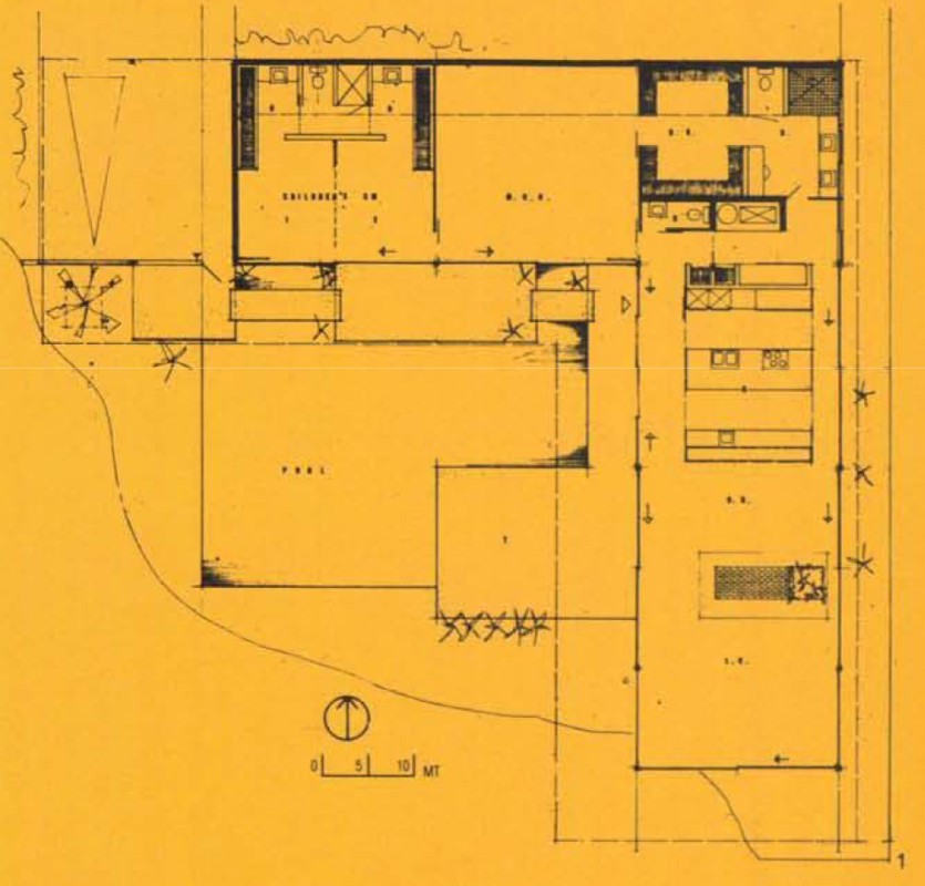 Craig Ellwood, Case Study House #18 (Fields House), Beverly Hills, 1958. Pianta . In Domus n.711, Dicembre 1989