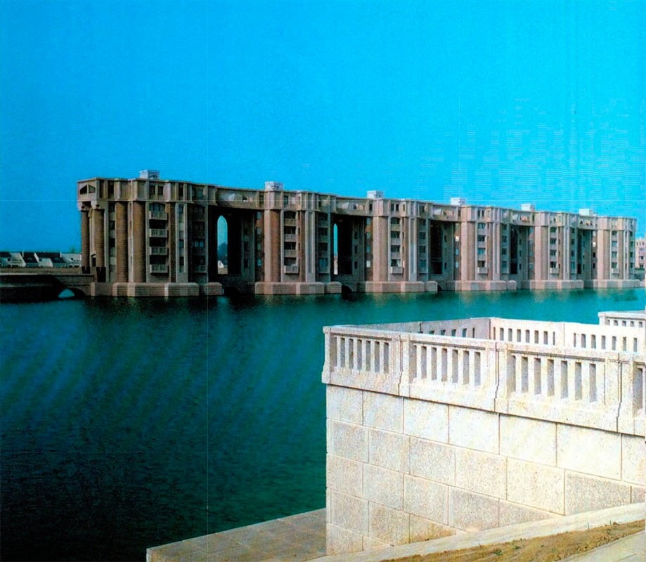 Taller de arquitectura Ricardo Bofill, Les arcades du lac, Saint-Quentin-en-Yvelines, 1981-1982. Foto © Waltraud Krase. Da Domus 668, gennaio 1986