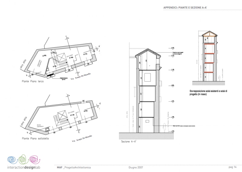 L’antico edificio dove ci troviamo viene modificato e reso unitario negli interni, e trasformato all’esterno in una facciata che racconta il passato e comunica con la città e I passanti.