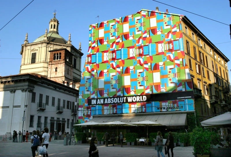 Con Absolut Wallpaper è stata inaugurata la prima di una serie di operazioni che vogliono ridisegnare e ridefinire gli spazi degradati delle città italiane, trasformandoli attraverso la creatività di grandi designer e artisti che sanno aprire una finestra visionaria anche nel più grigio dei muri. L’installazione di questa c arta da parti urbana porta la firma di Alessandro Guerriero, fondatore del gruppo post- avanguardia Alchimia e personalità assoluta della storia del design moderno. Sul Muro alle Colonne di San Lorenzo di Porta Ticinese, una parete di 360m2 danneggiata durante la Seconda Guerra Mondiale, Guerriero ha creato una texture di forte impatto, capace di unire geometrie oniriche che da sempre contraddistinguono il suo lavoro con il segno visionario del linguaggio della street art. Come racconta l’artista: “Penso che una cosa sia ‘decorativa’ quando la sua immagine, anche se individualistica e fantastica, restituisce un sistema di informazioni legate all'intenzione di stabilire un rapporto particolare con l'interlocutore. Mi pare che la decorazione renda il rapporto fra un oggetto e una persona più intimo. Spesso il messaggio che parte dall’immagine è più forte della forma stessa dell'oggetto”.