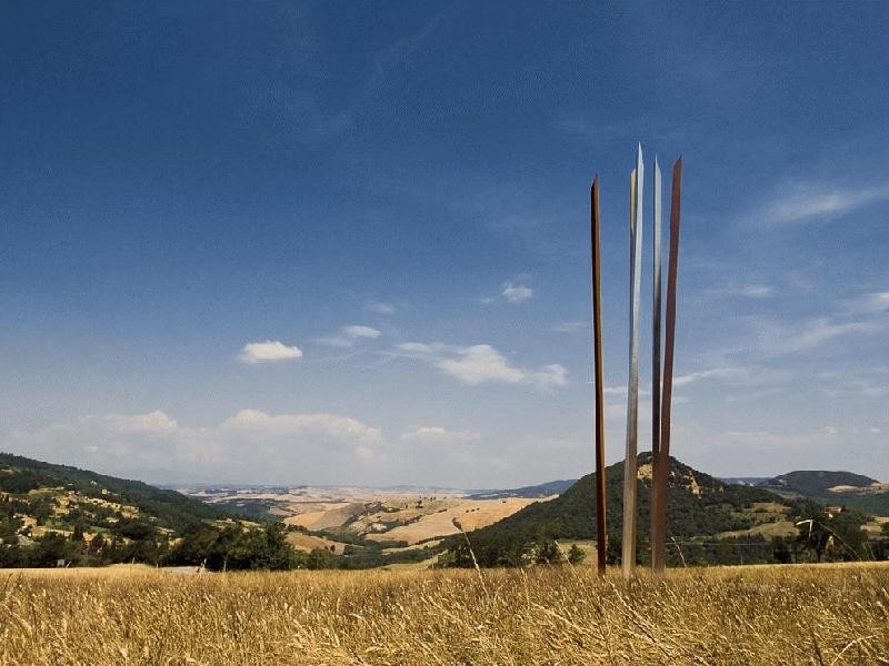 Contemporaneamente l’artista creerà un inedito dialogo con il territorio grazie a nuovi interventi. Le sculture, installate in più fasi tra maggio e giugno 2009, sottolineeranno tempi e luoghi di un paesaggio in cui storia, cultura e lavoro umano si incontrano sollecitando la memoria stessa dell’autore. Staccioli ha individuato una serie di luoghi di interesse storico-culturale con il desiderio di riportare alla luce l’identità di una comunità ma anche l’identità di un paese, l’Italia, le cui radici affondano in un passato che ha plasmato le città, le campagne e lo sviluppo stesso della società.